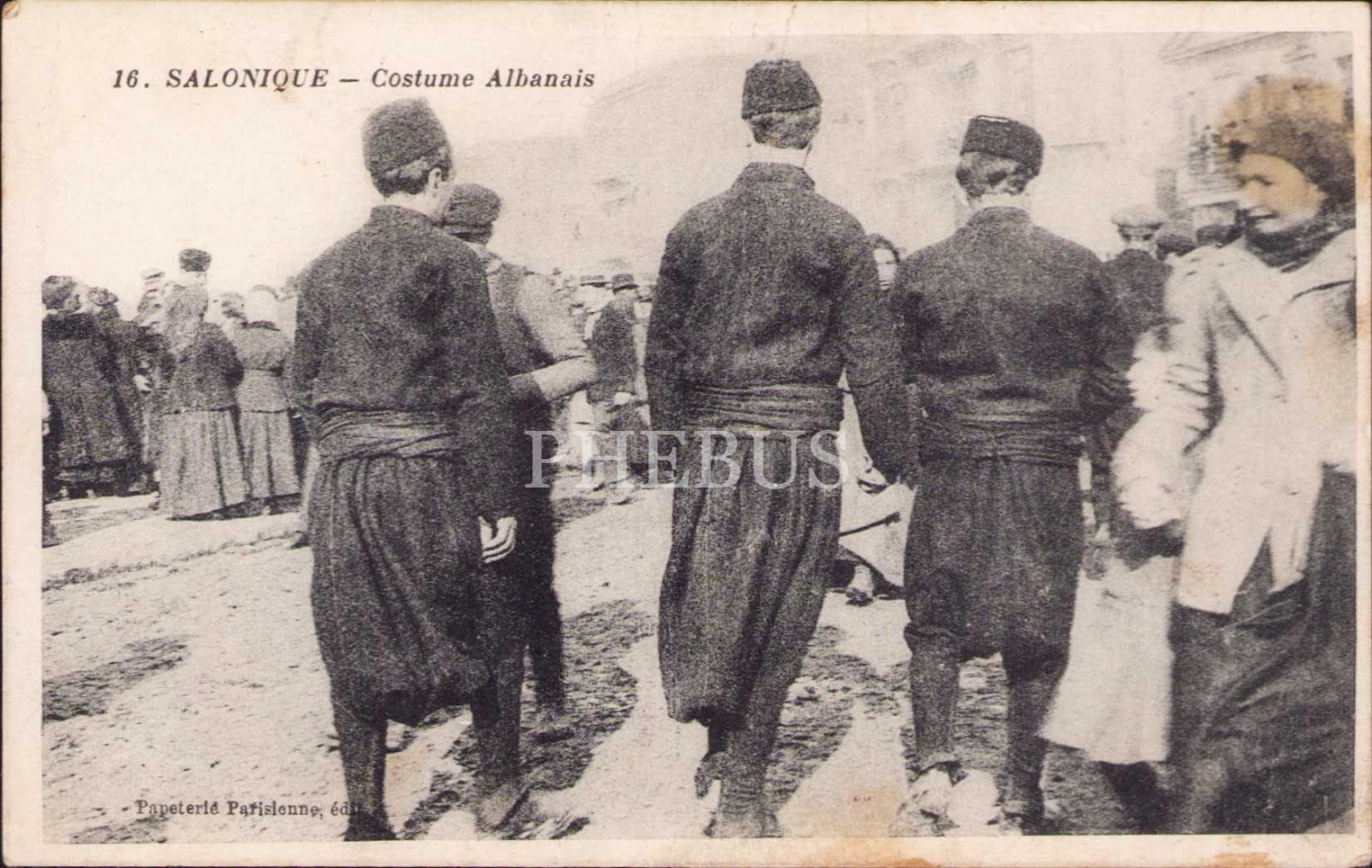 Osmanlı dönemi Selanik - Arnavut Kostümü kartpostalı, arkası yazılı, yorgun kondisyonda