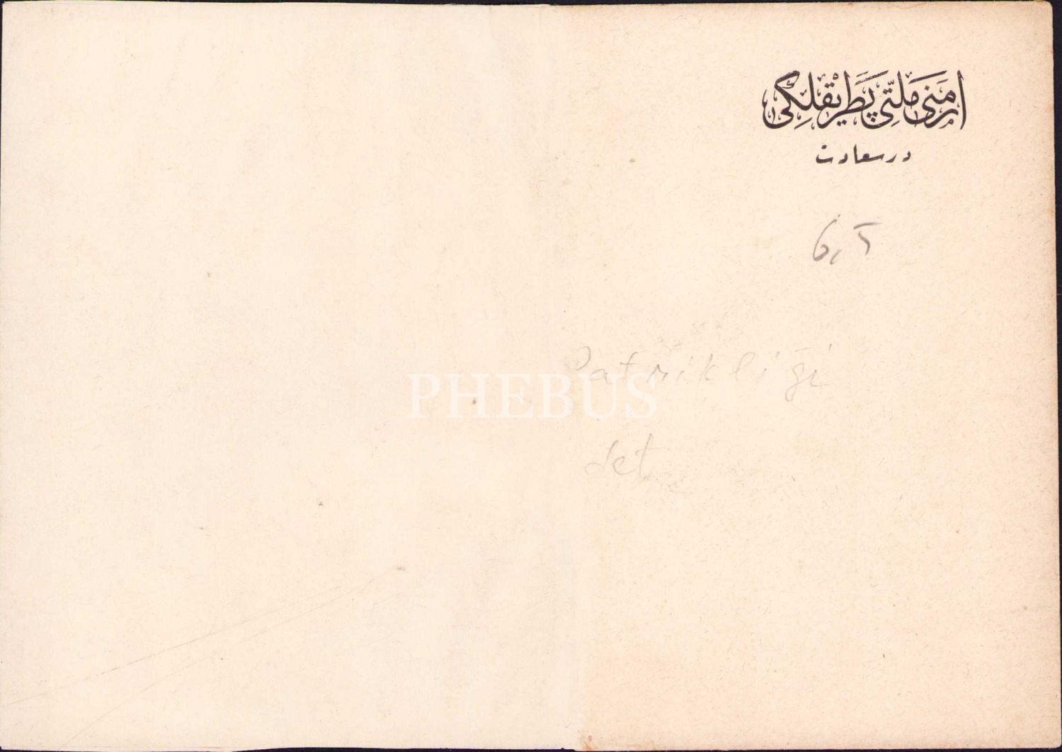 Osmanlıca yarısı ek Ermeni Milleti Patrikliği zarfı, 13x19 cm