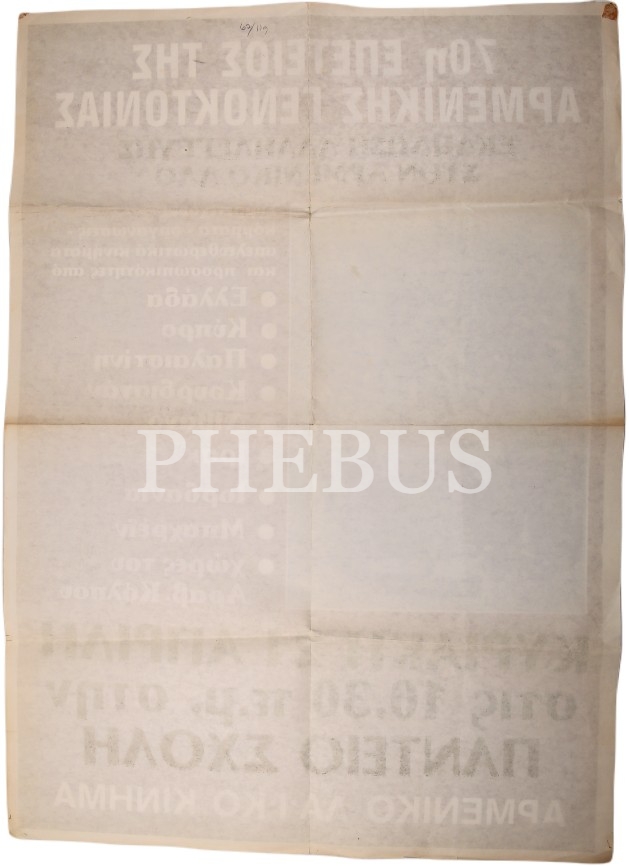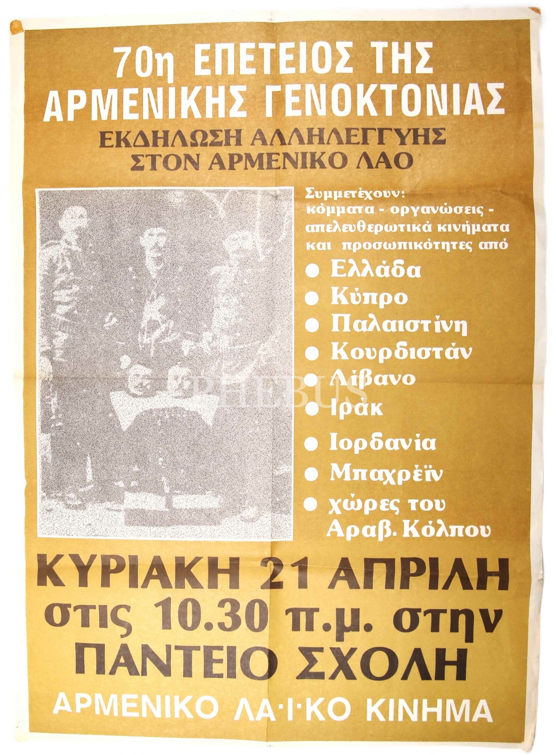 Panteio Okulu Ermeni Hareketi - Ermeni Soykırımının 70. Yıldönümü temalı afiş, 50x70 cm