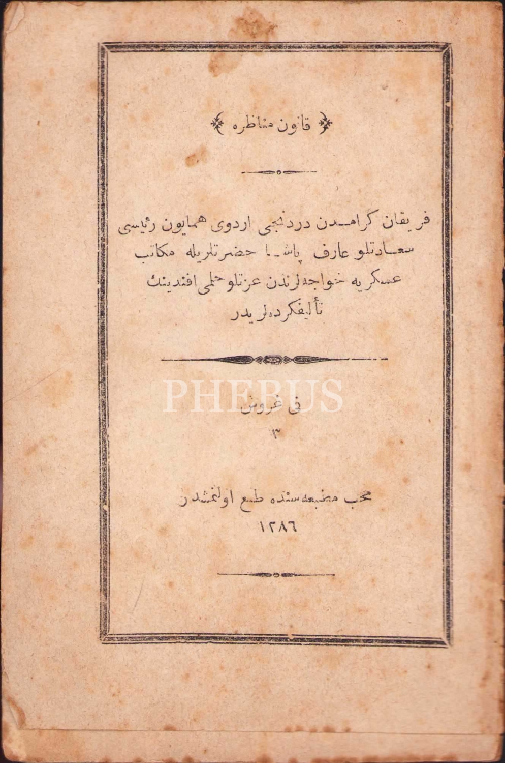 Osmanlıca Kanun-ı Münazara, Arif Paşa-Hilmi Efendi, Muhib Matbaası, 1286, 26 syf., 11x17 cm, haliyle