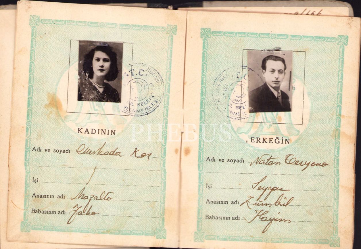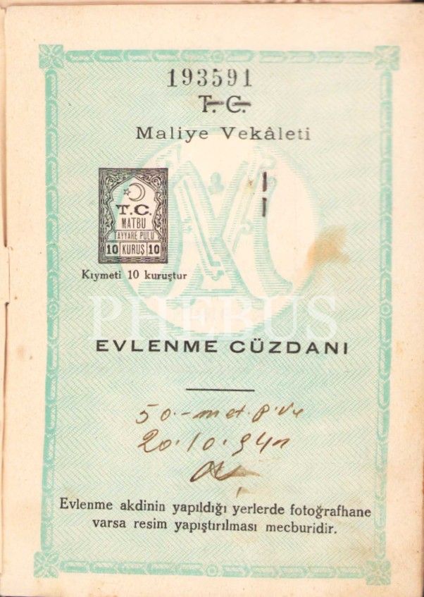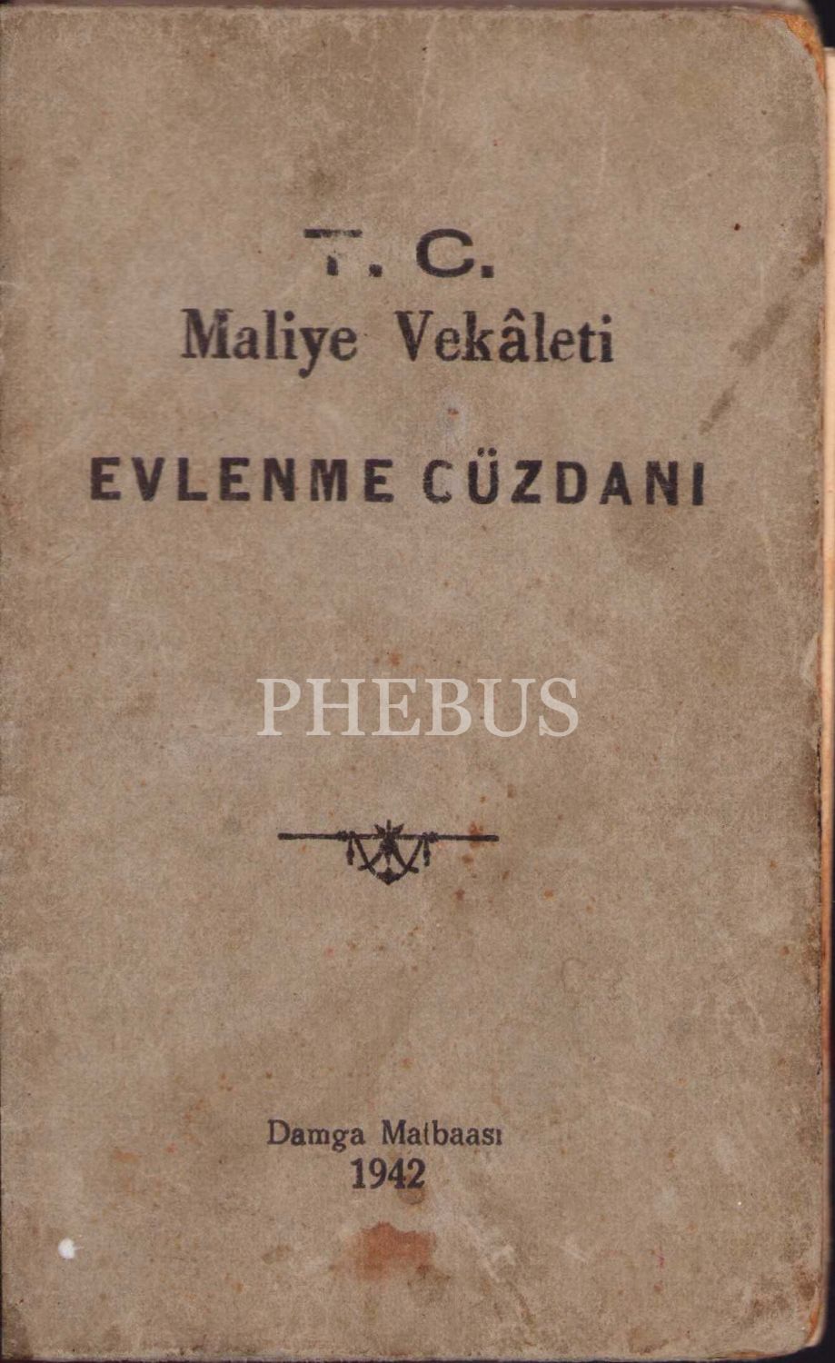 Yahudi Hayim oğlu Natem Efendi'ye ait evlilik cüzdanı, 5x7 cm, metin kısmının yarıdan fazlası sırttan ayrılmış