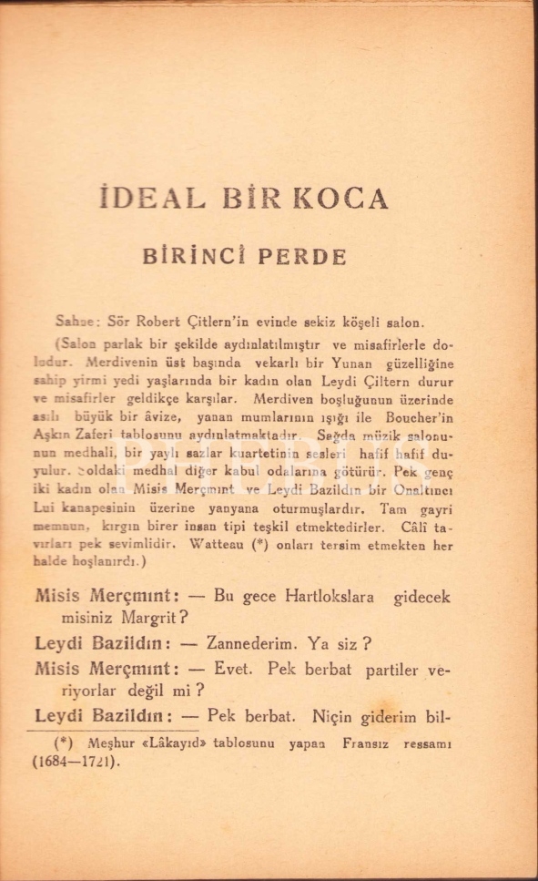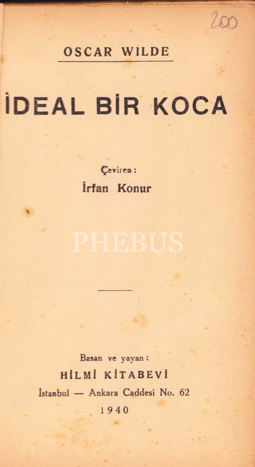 İdeal Bir Koca, Oscar Wilde, Çev.: İrfan Konur, Hilmi Kitabevi, İstanbul 1940, 145 syf., 12x18 cm