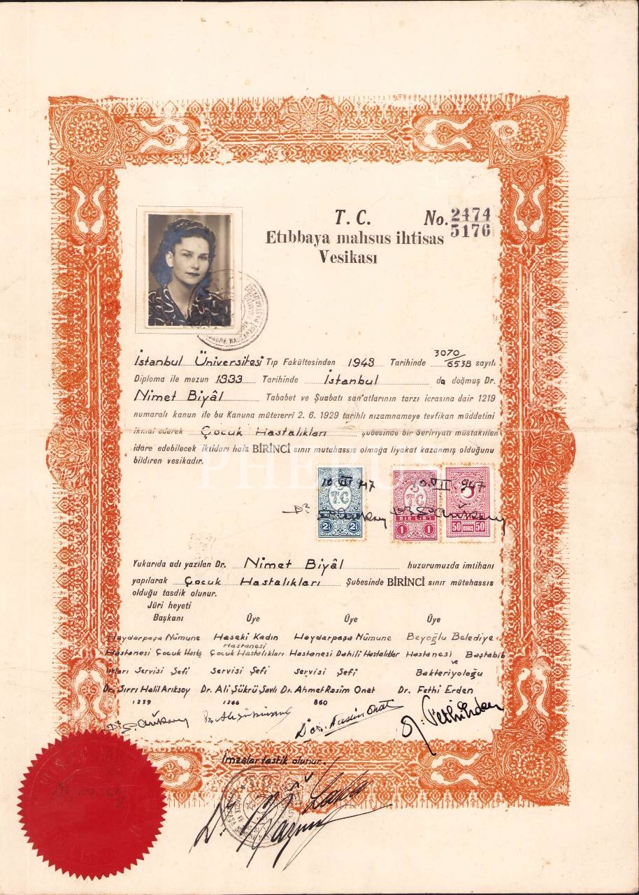 Tıpta uzmanlık belgesi, İstanbul Üniversitesi Tıp Fakültesi, 29x39 cm