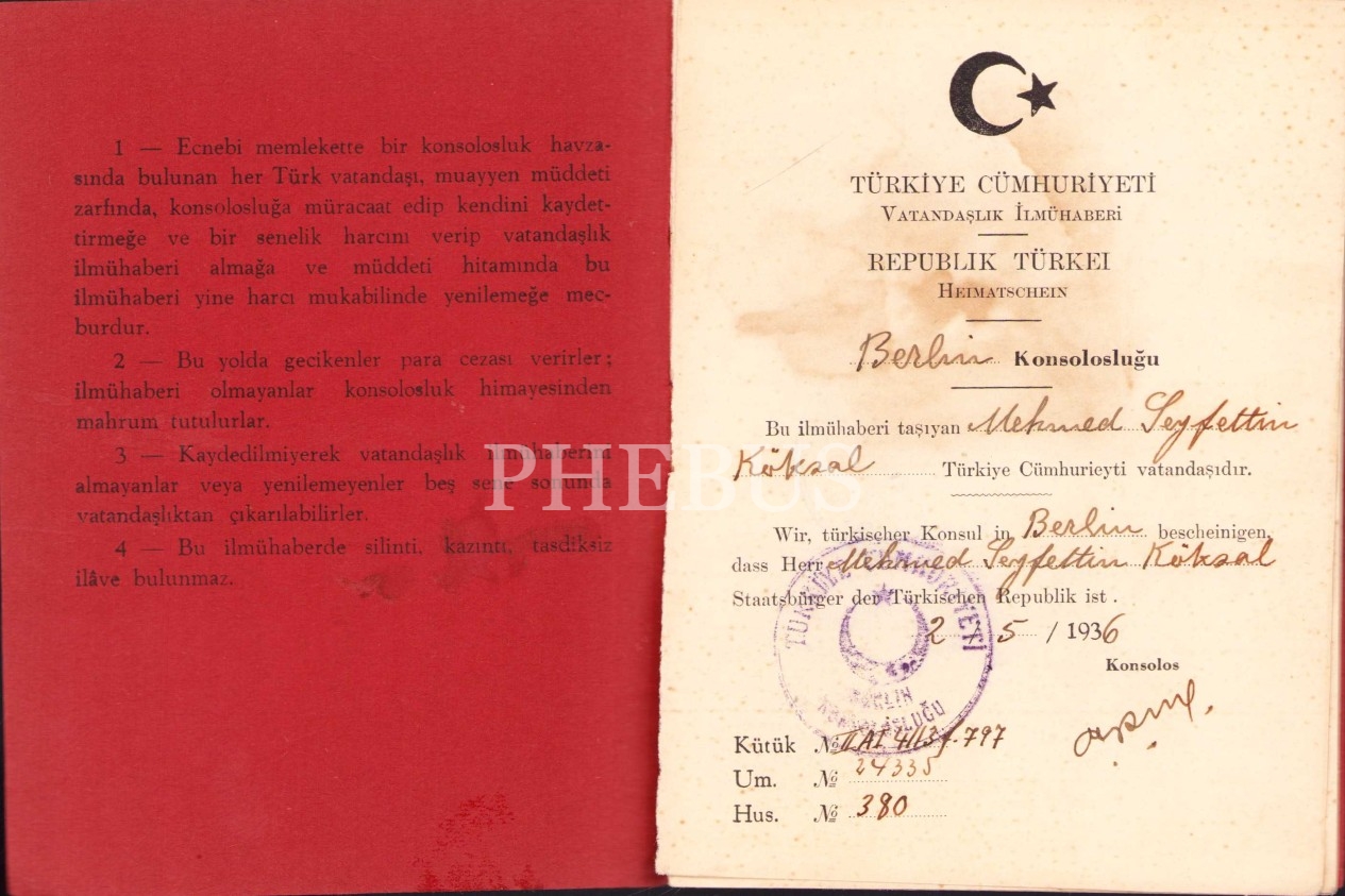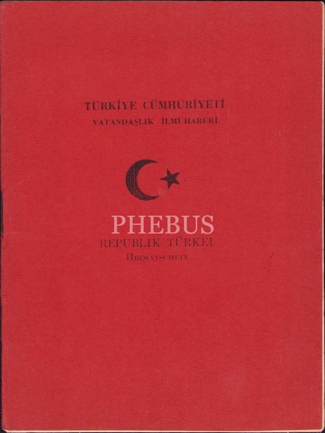 Türkiye Cumhuriyeti Vatandaşlık İlmühaberi, 16 sayfa, ilk sayfa ciltten ayrılmış, 12x16 cm