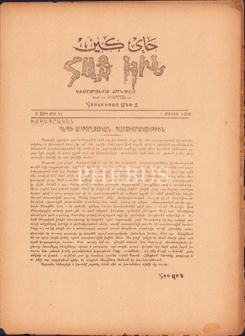 Ermenice Hay Gin gazetesinin 11. sayısı, 1928 tarihli