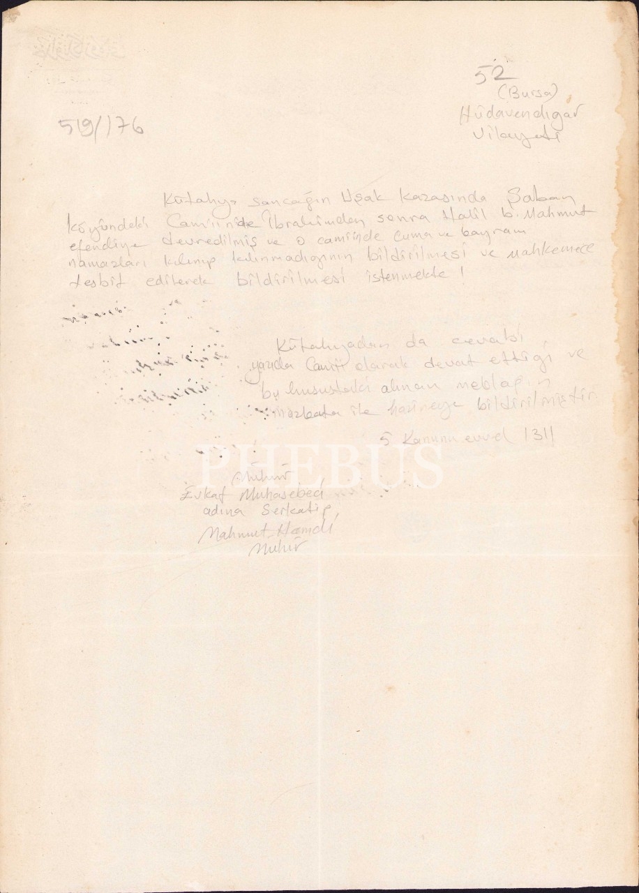 Osmanlıca belge, Kütahya Evkaf Müdürlüğü, 1311, 24x33 cm