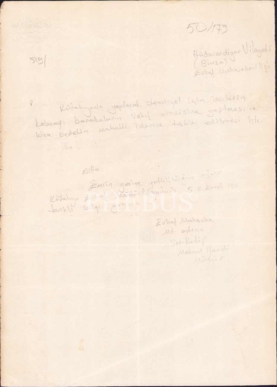 Osmanlıca belge, Kütahya Evkaf Müdürlüğü, 1311, 24x33 cm