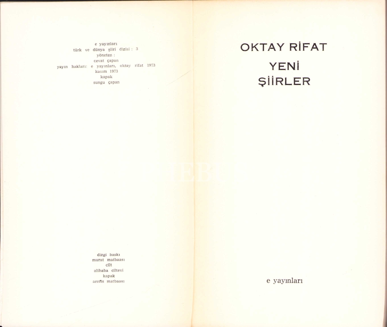 Yeni Şiirler, Oktay Rifat, e Yayınları, 1973, 119 syf., 11x19 cm