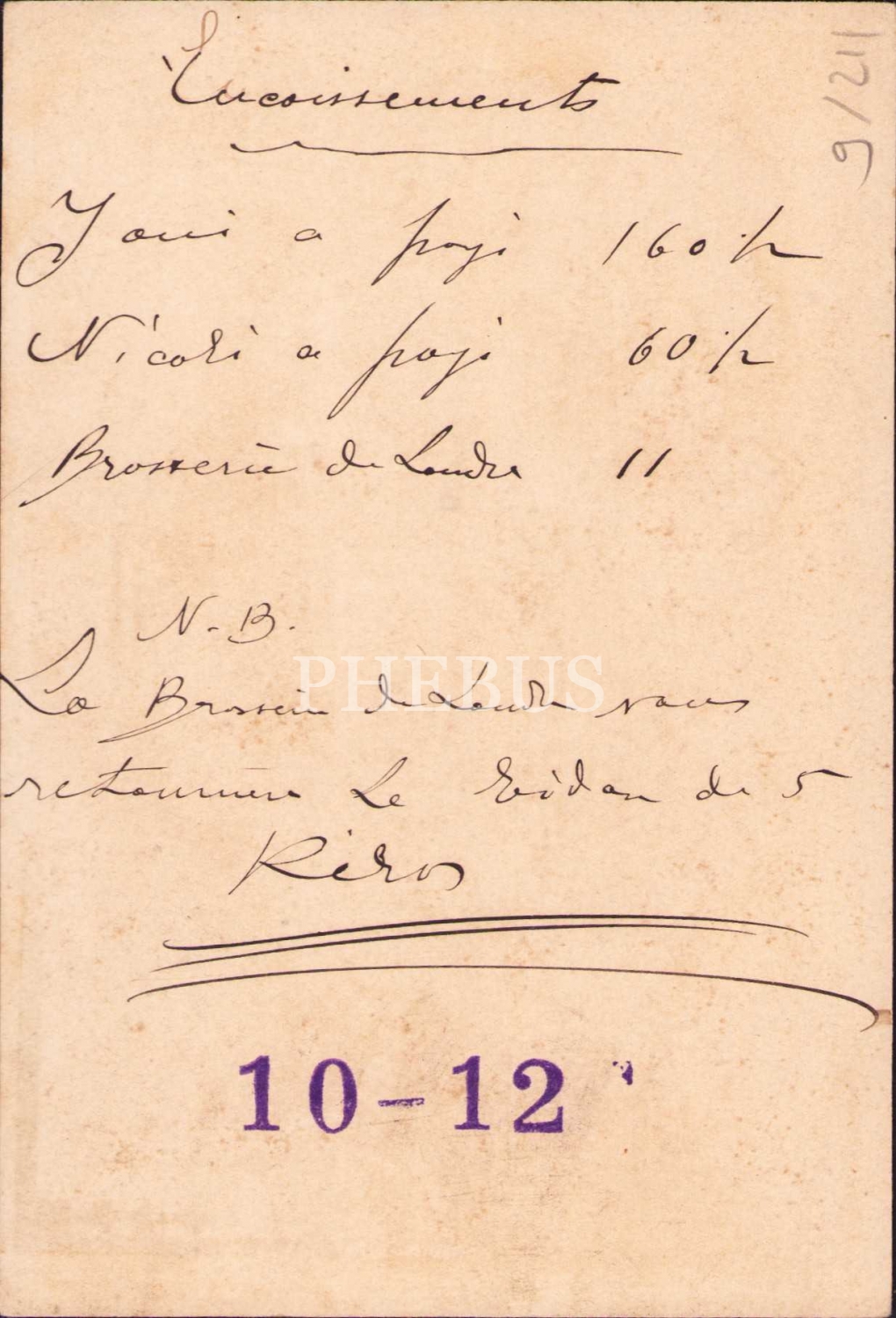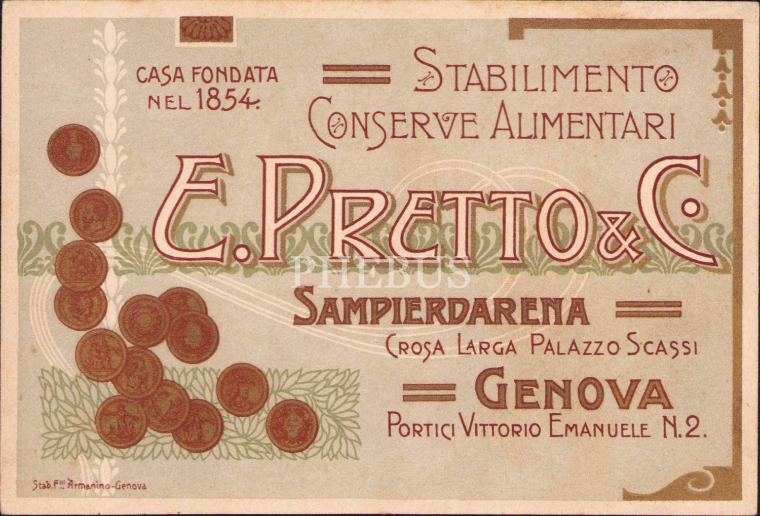 Cenova merkezli E. Pretto & C. firmasının reklam kartı, arkası yazılı, 15x10 cm