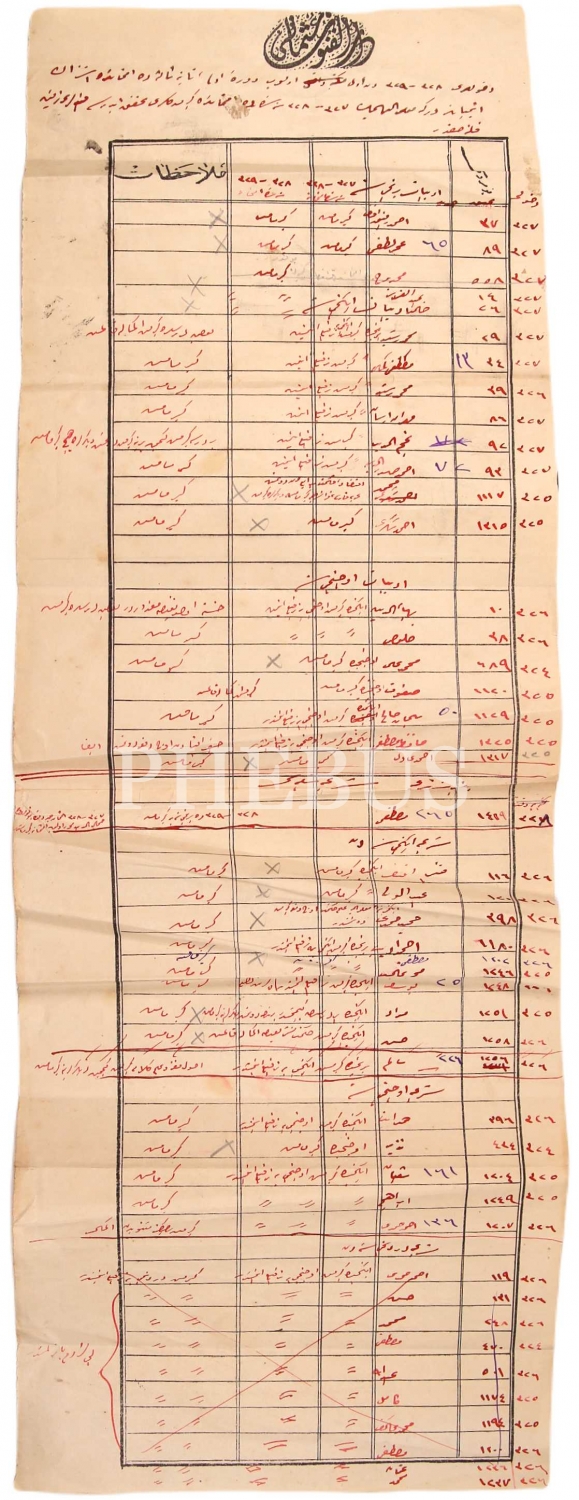 Osmanlıca Darülfünun öğrenci not çizelgesi, 20x57 cm