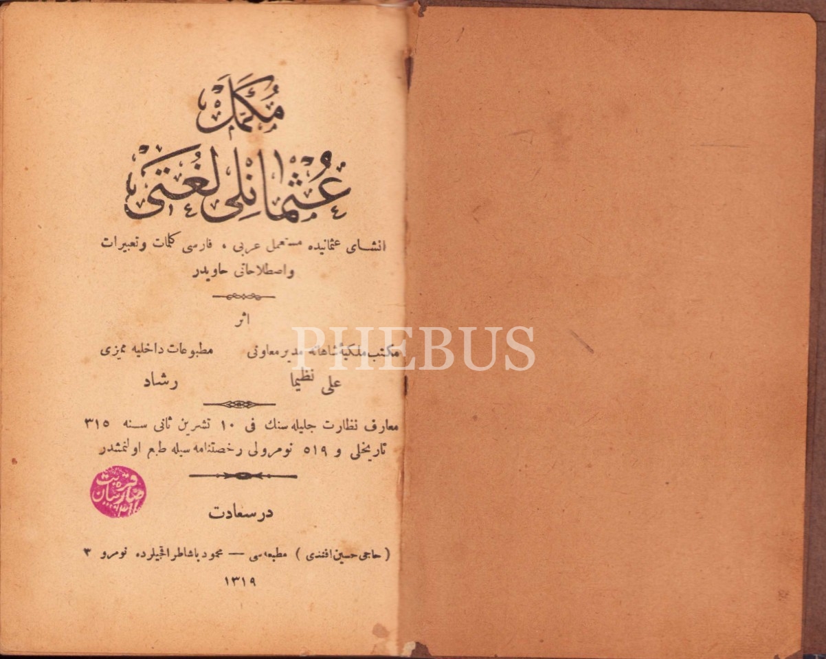 Osmanlıca Mükemmel Osmanlı Lügati, Ali Nazima- Reşad, Hacı Hüseyin Efendi Matbaası, Dersaadet, 1319, 999 syf., 12x19 cm