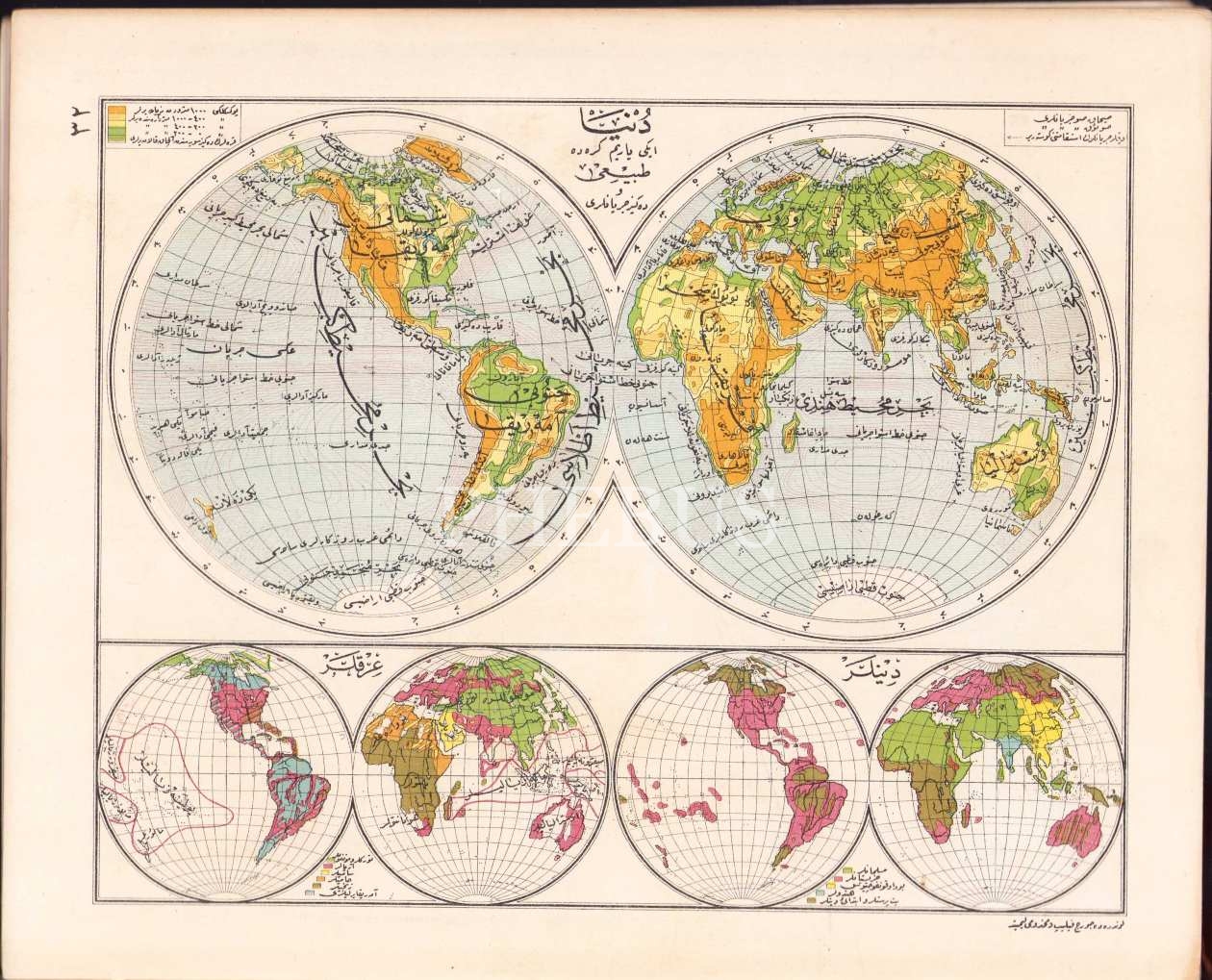 Osmanlıca Orta Atlas, Müderris Faik Sabri, Kanaat Kütüphanesi, İstanbul 1928, 32 syf., 22x28 cm