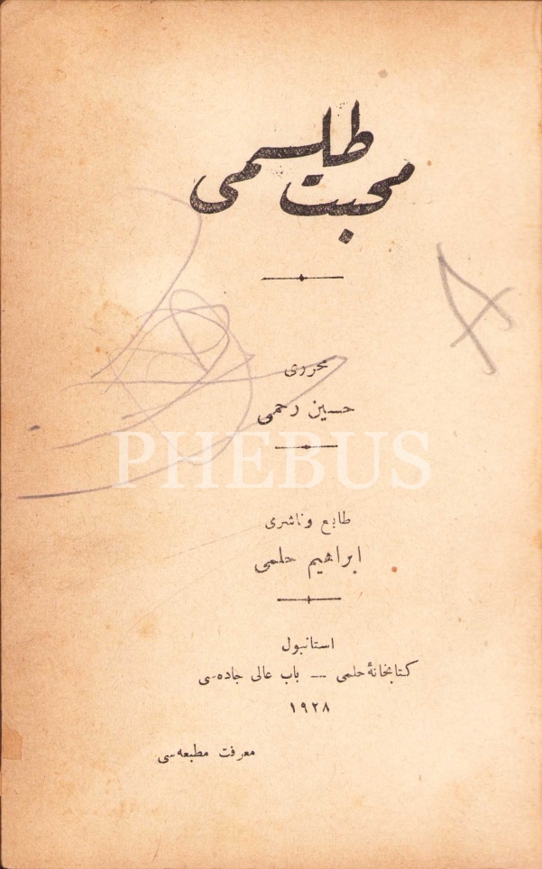 Osmanlıca Muhabbet Tılsımı, Hüseyin Rahmi Gürpınar, Hilmi Kitaphanesi, İstanbul 1928, 371 syf., 12x18 cm