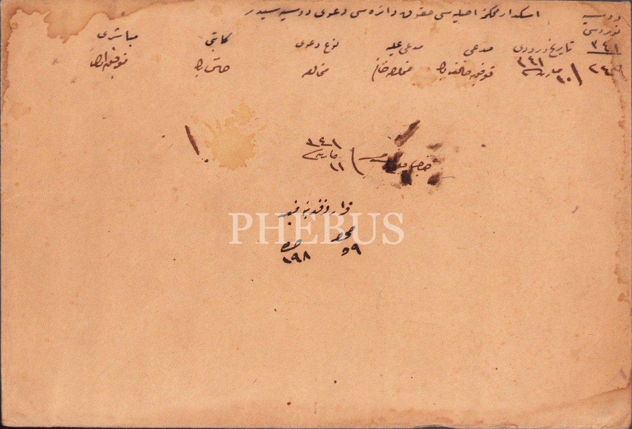 Osmanlıca Üsküdar Asliye Mahkemesi dava dosyası zarfı, 16x24 cm