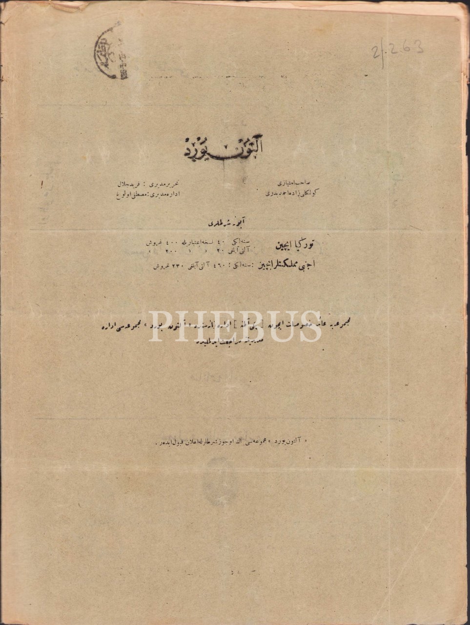 Osmanlıca Altınyurt dergisi, 1. sayı, Adana 1923, 12 sayfa, 24x32 cm, kenarları haliyle