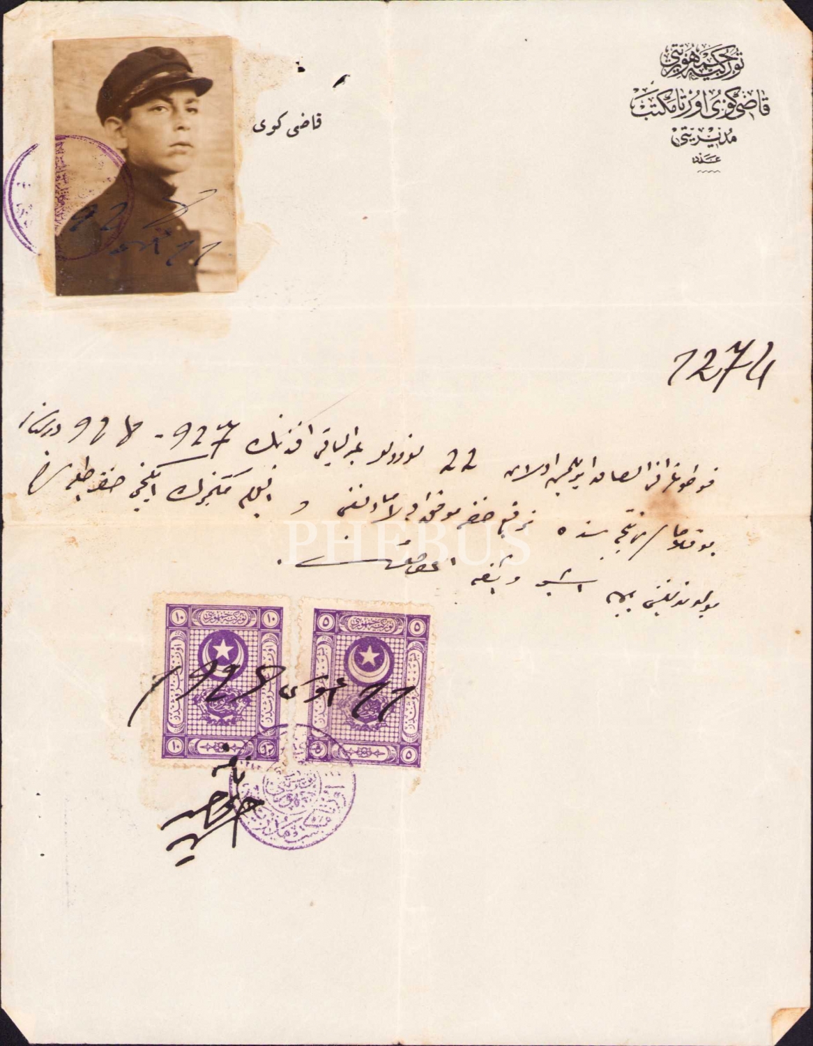 Osmanlıca belge, Kadıköy Ortaokul Müdürlüğü, 1928, 15x20 cm