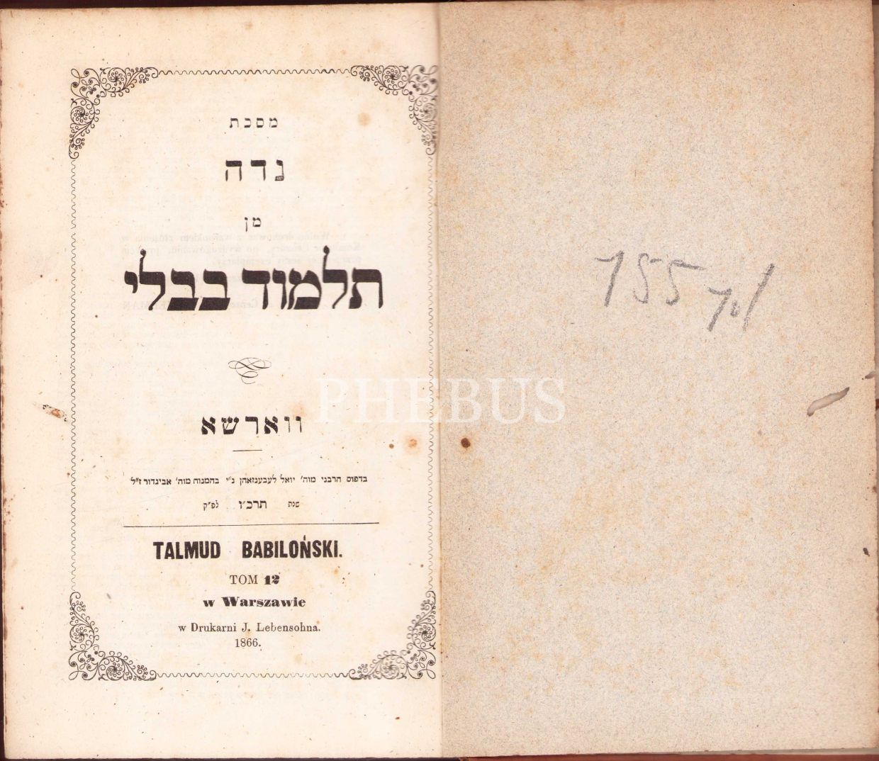 İbranice Talmud, 1866, 14x23 cm