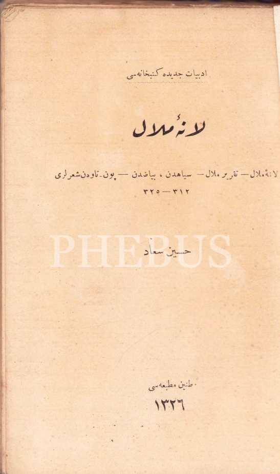 Osmanlıca Lane-i Melal, Hüseyin Suad Yalçın, Tanin Matbaası, 1326, 141 syf., 12x19 cm