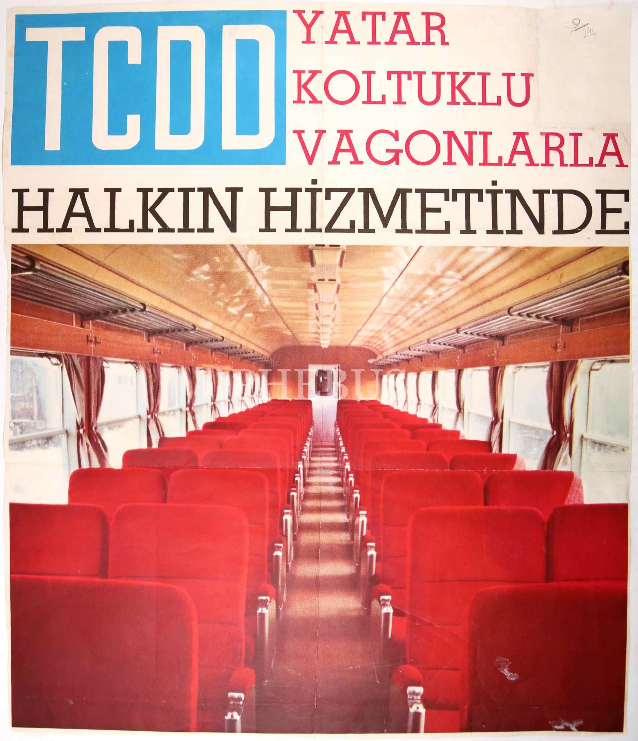 TCDD Yatar Koltuklu Vagonlarla Hizmetinizde yazılı afiş, 54x64 cm