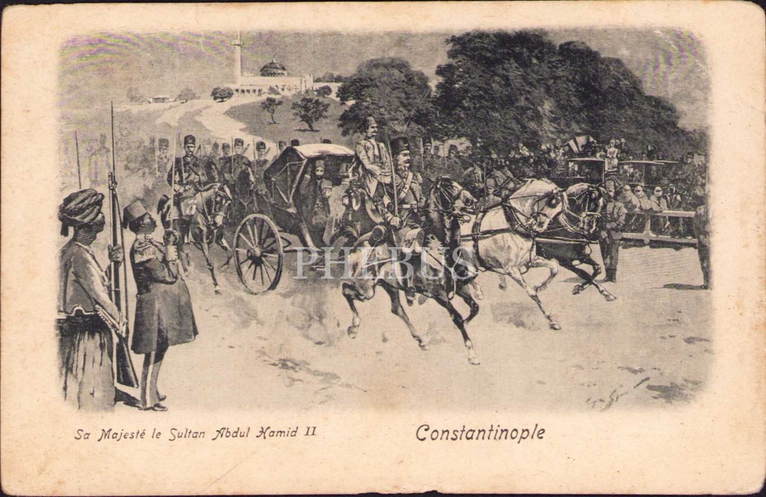 Sultan 2. Abdülhamid görselli nadir kartpostal, Constantinople, 9x14 cm