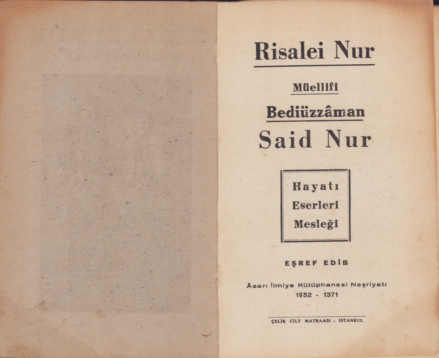 Risalei Nur, Bediüzzaman Said Nur, Çelik Cilt Matbaası, İstanbul, 1371, kapak Bediüzzaman ve biraderinin 40 sene önce çekilmiş bir fotoğrafı, 174 sayfa, 14x20cm