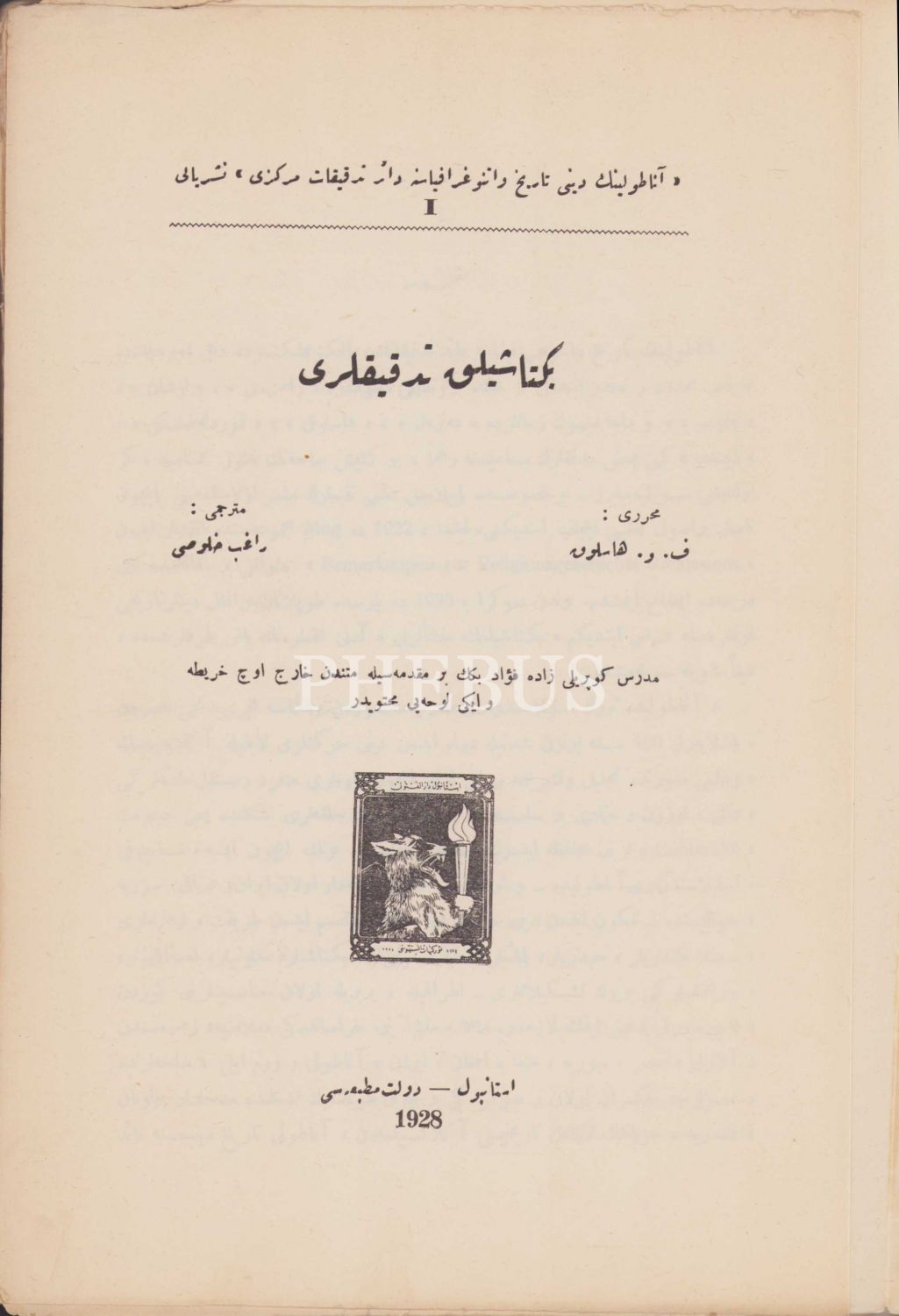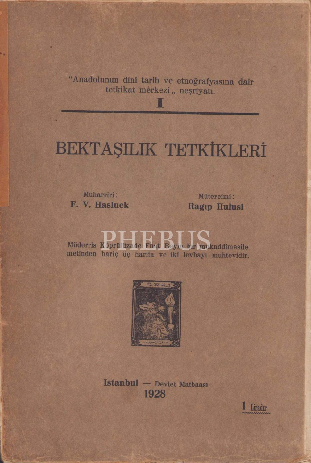 Bektaşilik Tetkikleri, F. V. Hasluck, çev., Ragıp Hulusi, Devlet Matbaası, İstanbul, 1928, Osmanlıca ve Türkçe kapak, sırtı haliyle, 141 sayfa, 17x25cm
