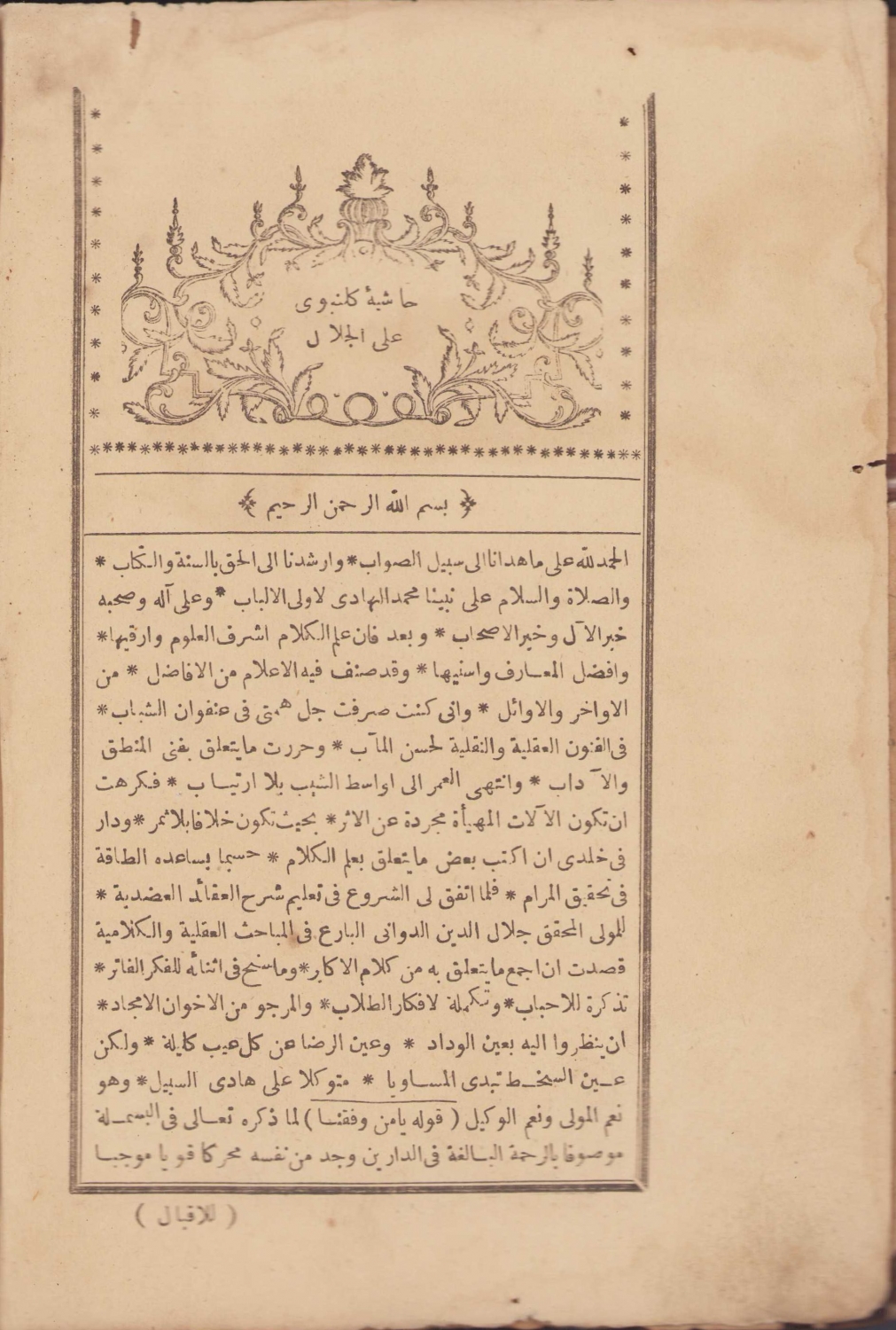 Haşiye-i Gelenbevi Ale'l Celal, Arapça, miklepli, deri cilt, sırtı kopuk, cilt haliyle, 525 sayfa, 16x24cm