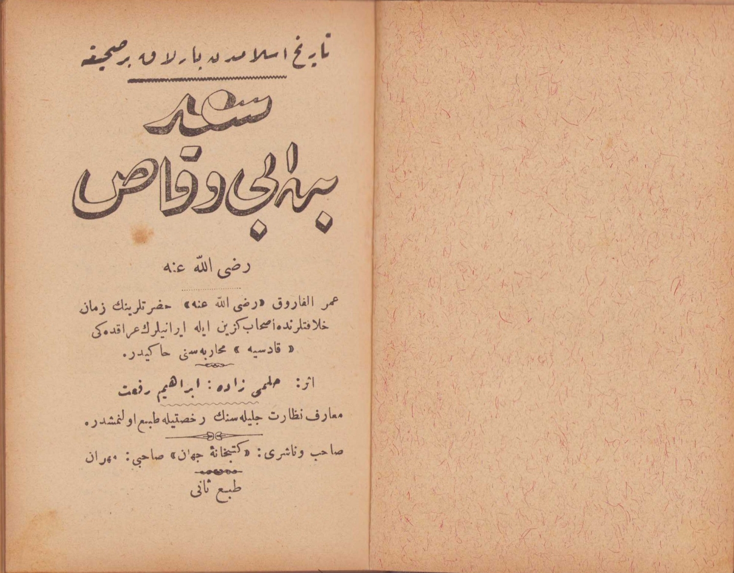 Said Bin Ebi Vakkas radiyallahu anh: Tarih-i islamdan parlak bir sahifa, Hilmizade İbrahim Rıfat, ikinci baskı, Mihran Matbaası, Osmanlıca, 96 sayfa, 9x13cm