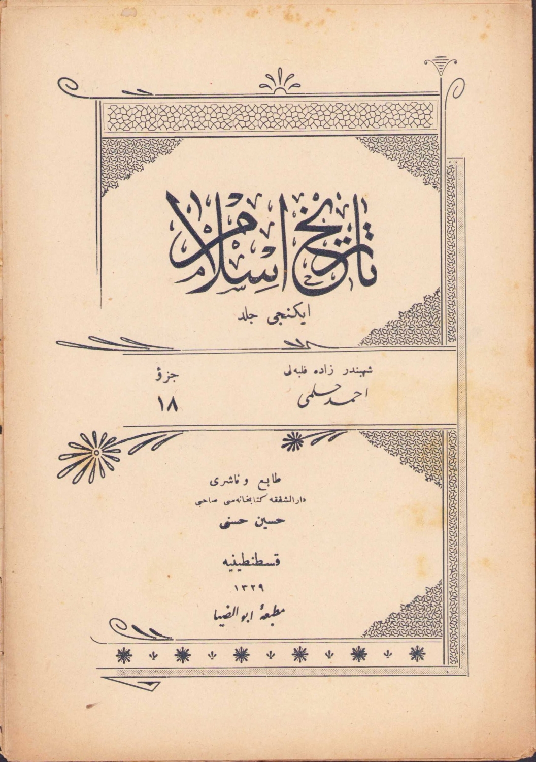 Tarihi İslam, ikinci cilt - 18.cüz, Ahmet Hilmi, Matbaa-i Ebuzziya, Konstantin, 1329, Osmanlıca, 15 sayfa, 14x20cm