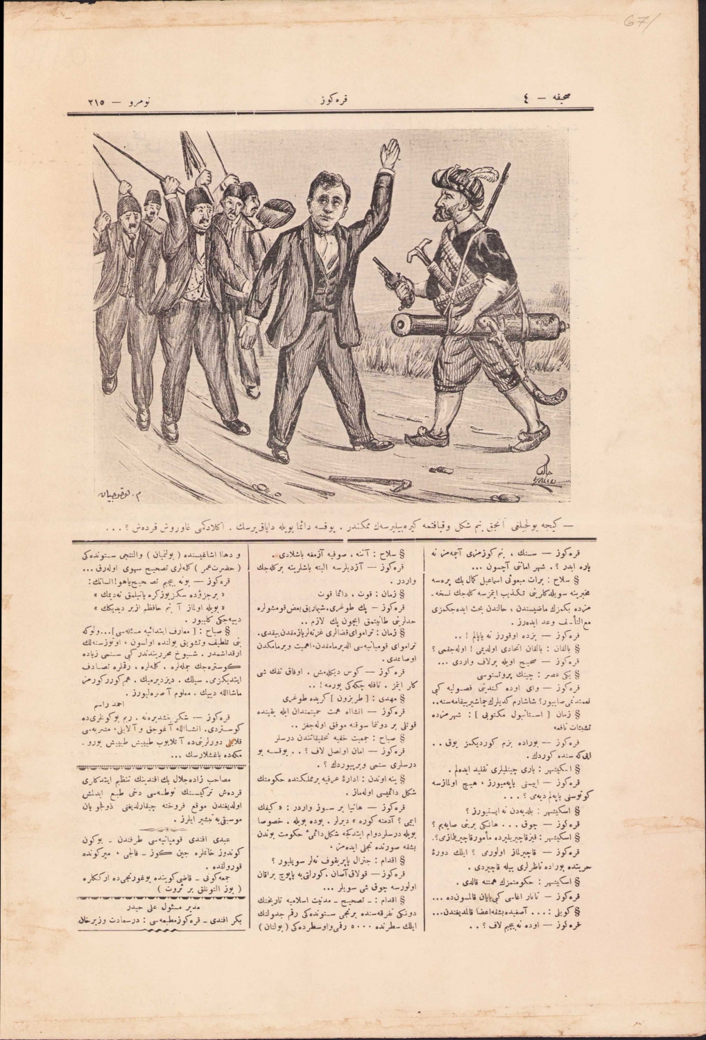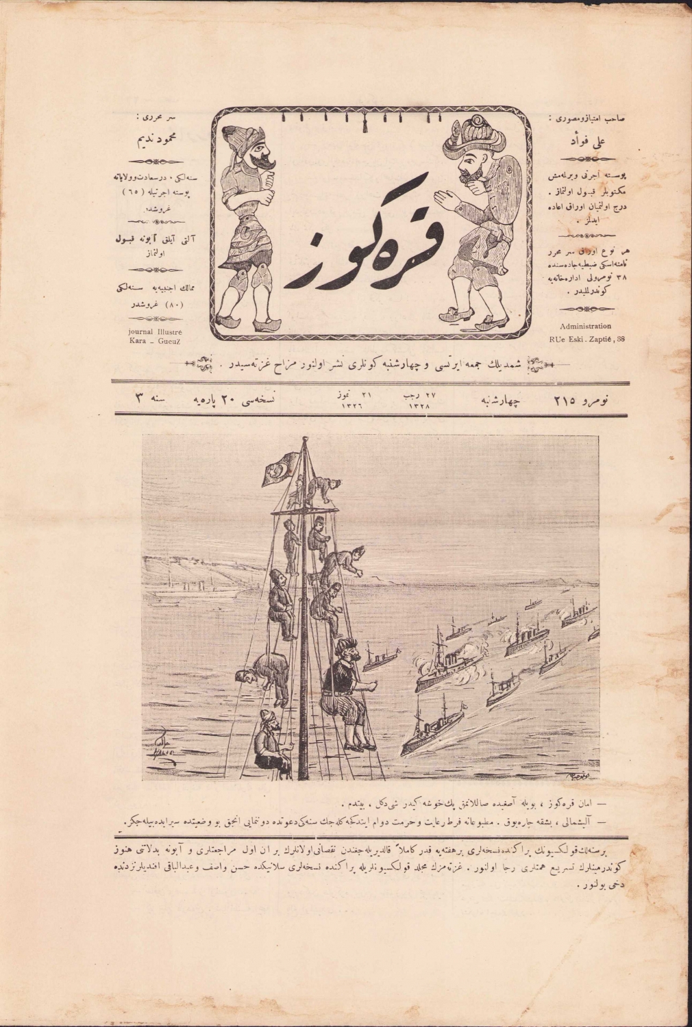 Karagöz Mizah Gazetesi, sahibi Ali Fuat, 215.sayı, 1326, Osmanlıca, görselli kapak, 4 sayfa, 28x41cm