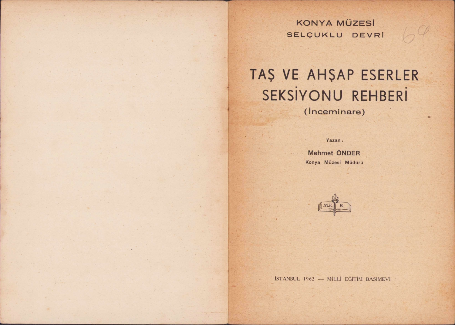 Konya Müzesi Selçuklu Devri Taş ve Ahşap Eserler Seksiyonu Rehberi, İstanbul, 1962, görselli, 22 sayfa, 14x20cm