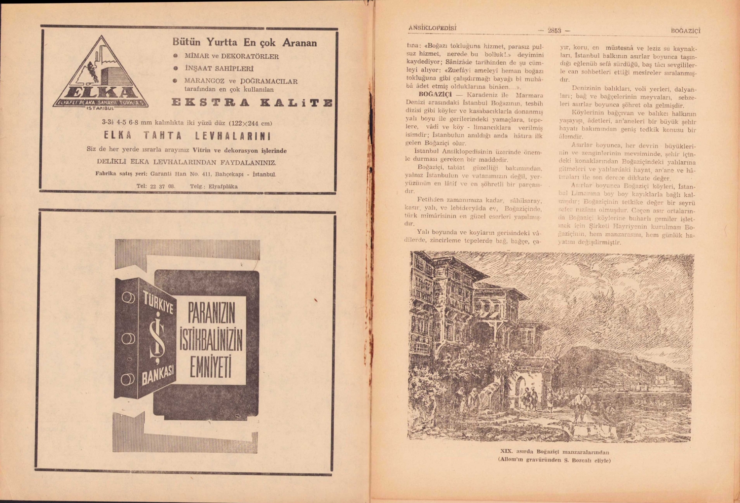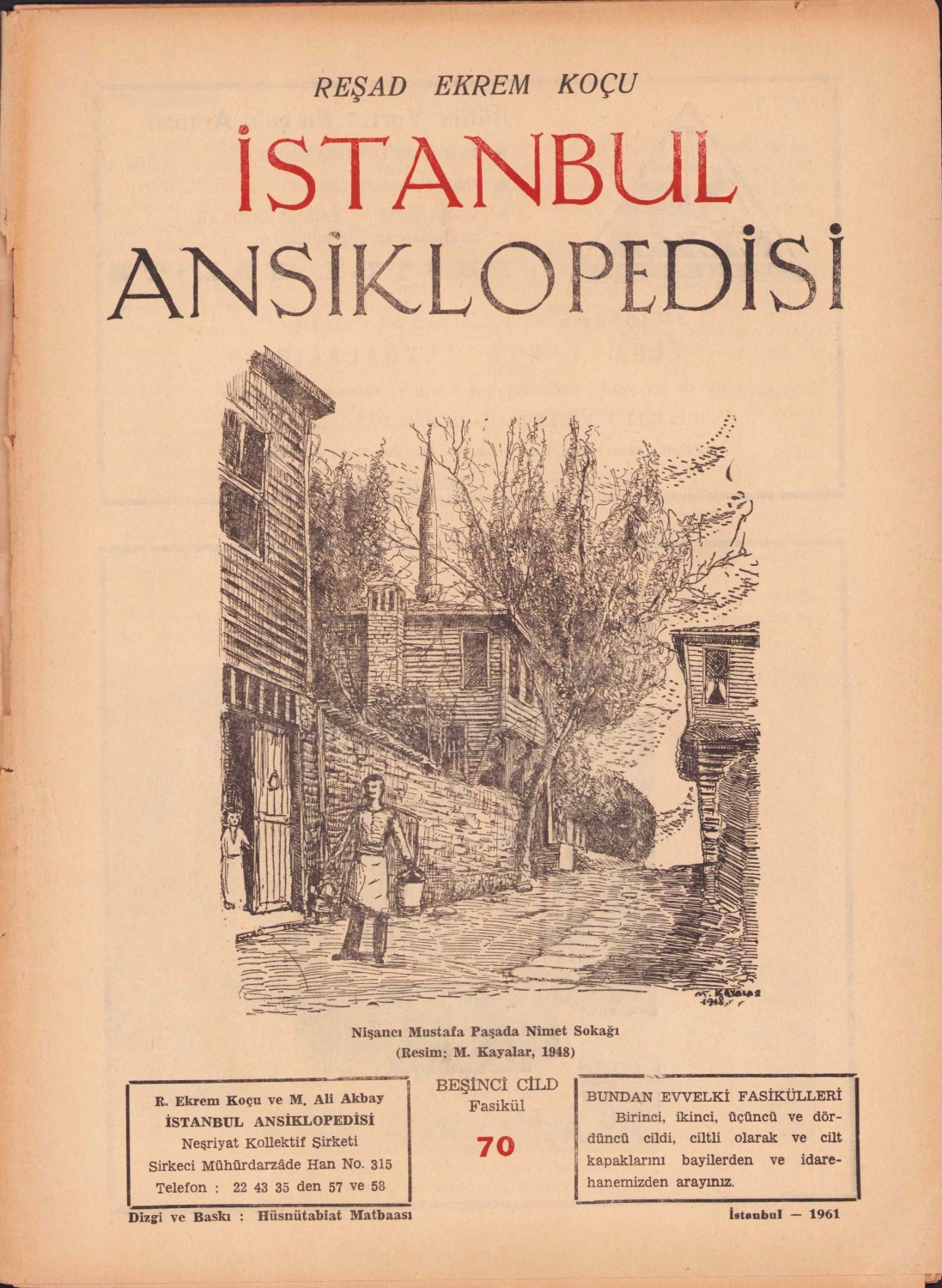 İstanbul Ansiklopedisi 5.cilt 70. fasikül, Reşad Ekrem Koçu, İstanbul, 1961, Nişancı Mustafa Paşada Nimet Sokağı görselli kapak, Boğaziçi temalı bölüm, resimler: Sabiha Bozcalı ve Nezih, sırtı haliyle, kapak kopuk, 31 sayfa, 20x28cm