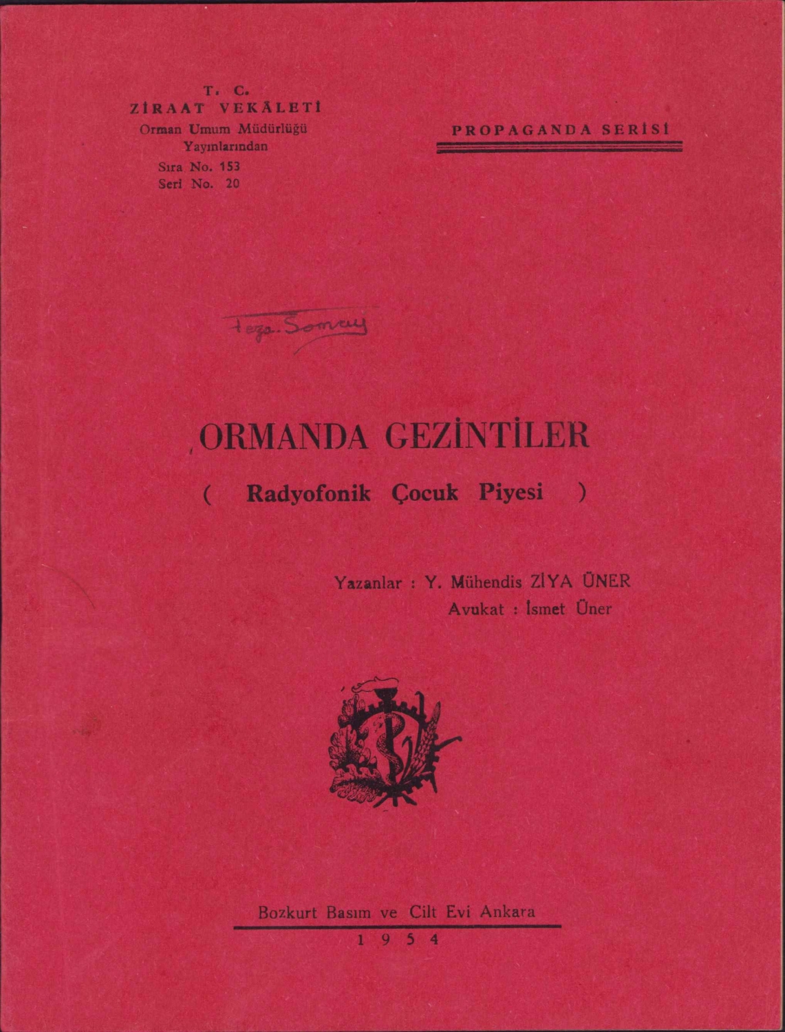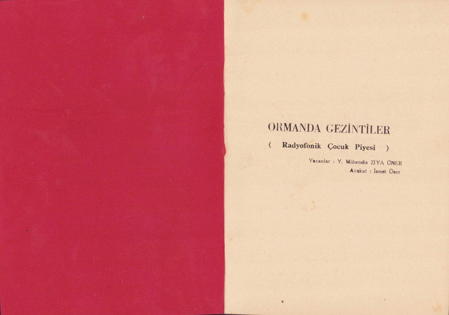 Ormanda Gezintiler - Radyofonik Çocuk Piyesi, Y. Mühendis Ziya Üner - Avukat İsmet Üner, Ankara, 1954, Propaganda serisi, 30 sayfa, 17x23cm