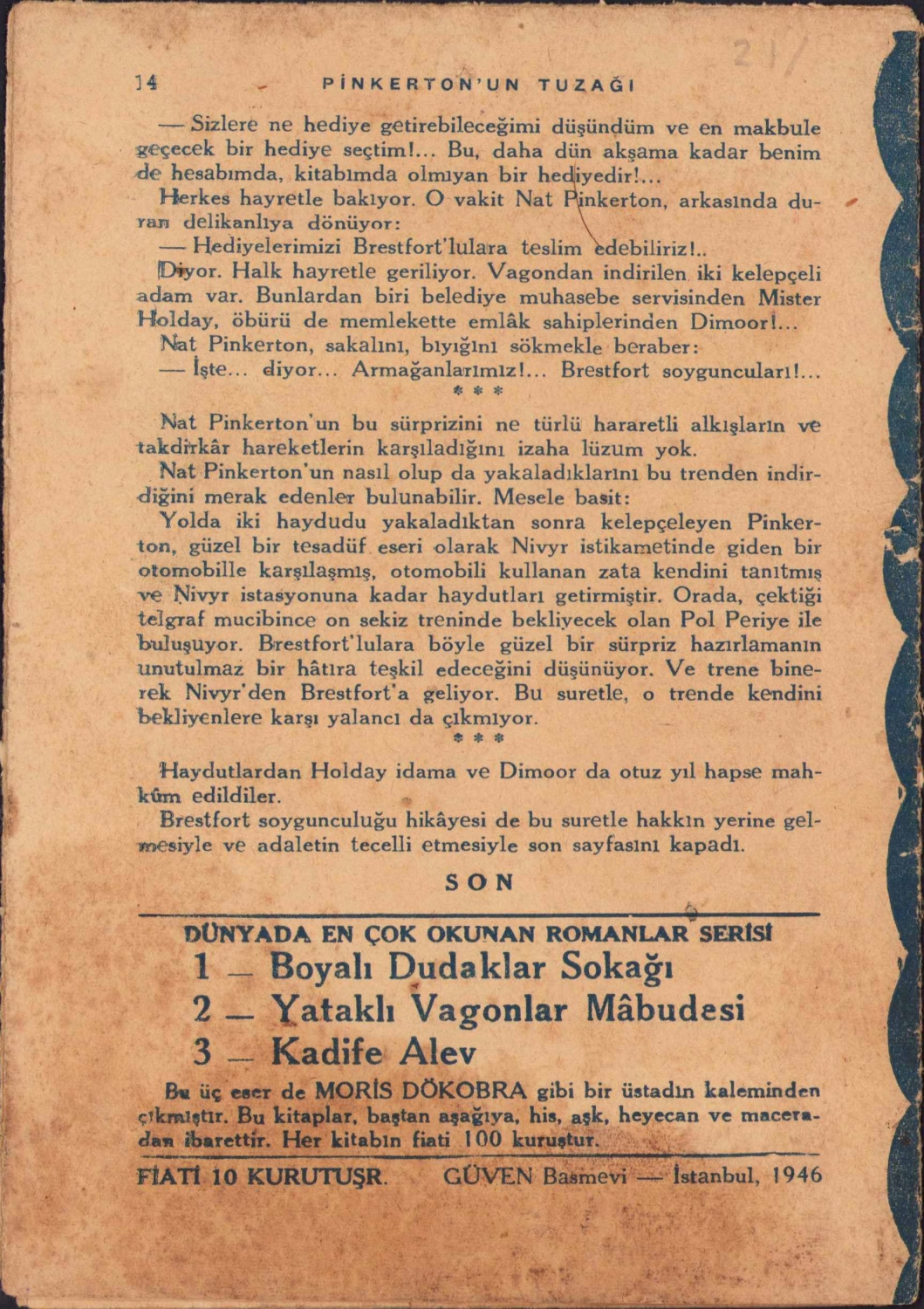 Pinkerton'un Tuzağı, Meşhur Amerikan Polis Hafiyesi, No:150, 14 sayfa, 14x20 cm