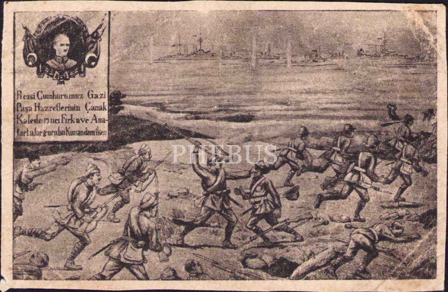 Atatürk'ün Çanakkale'de 19. Fırka ve Anafartalar Kumandanı olduğu zamanı resmeden kart, 8x13 cm, haliyle