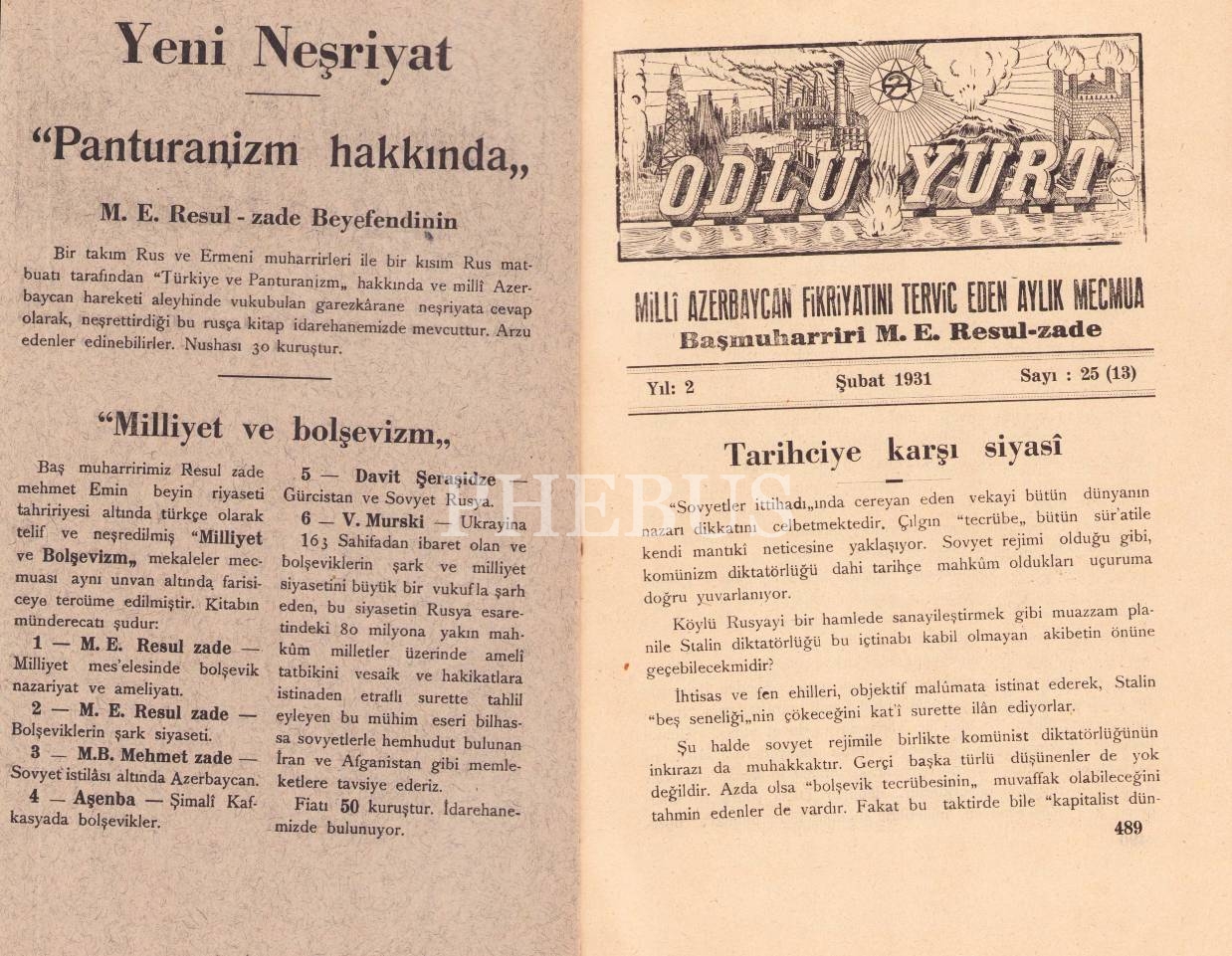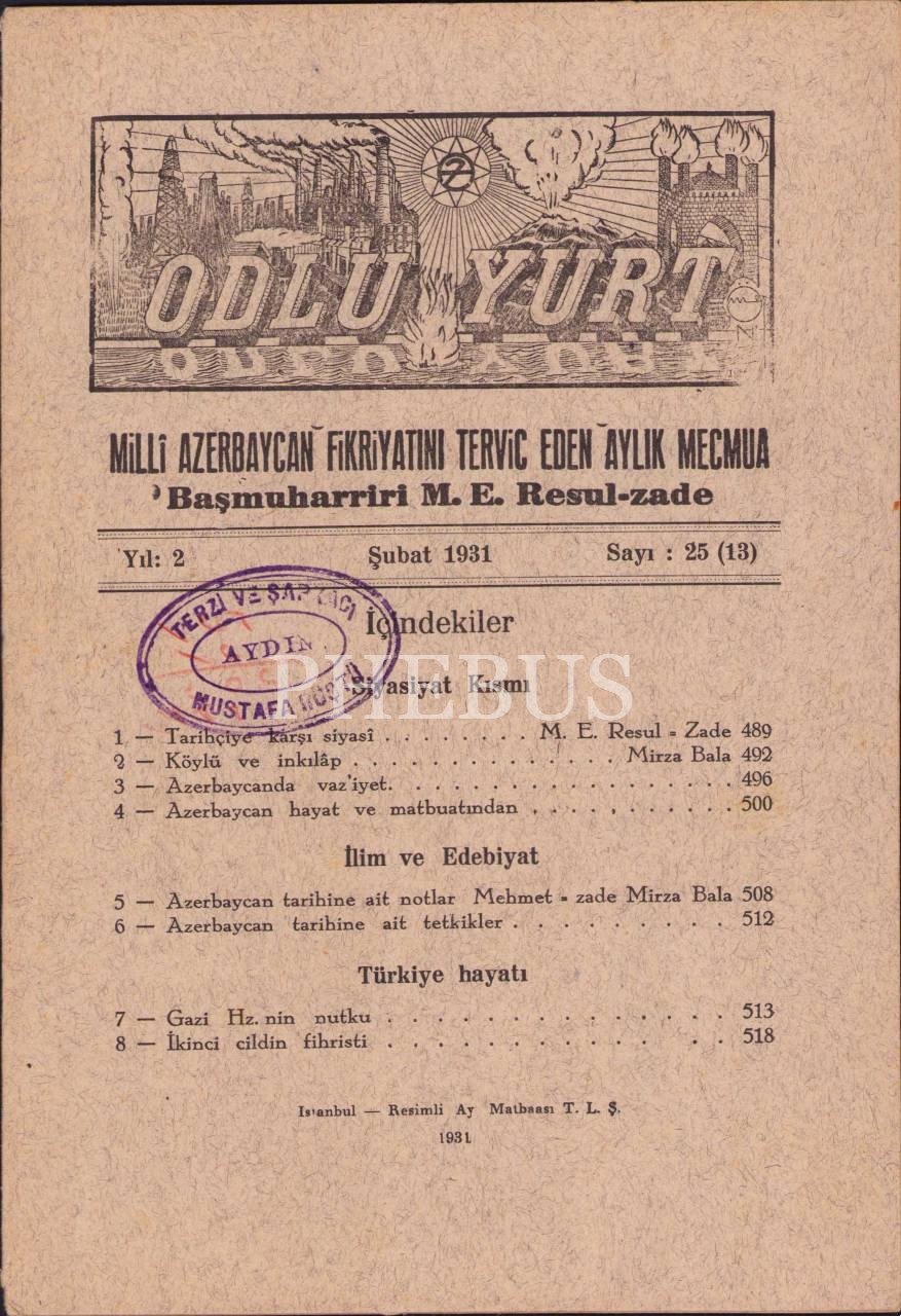 Odlu Yurt dergisi, Azerbaycan, 25. sayı, 1931, 32 syf., 16x24 cm
