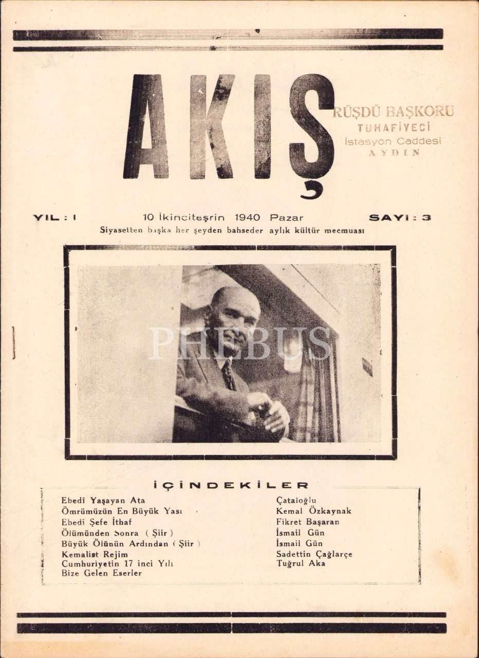 Akış dergisi, 3. sayı, 1940, C.H.P. Basımevi, Aydın, 14 syf., 20x28 cm