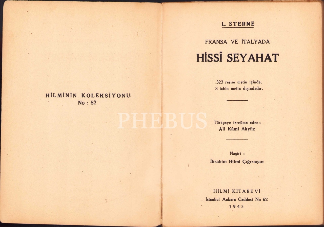 Fransa ve İtalya'da Hissi Seyahat, L. Sterne, Çev.: Ali Kami Akyüz, Hilmi Kitabevi, İstanbul 1945, 232 syf., 13x18 cm