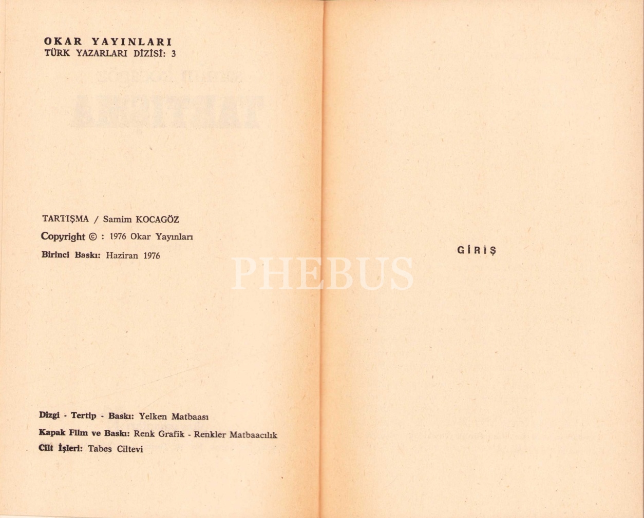 Tartışma, Samim Kocagöz, ithaflı ve imzalı, Okar Yayınları, İstanbul 1976, 283 syf., 12x19 cm