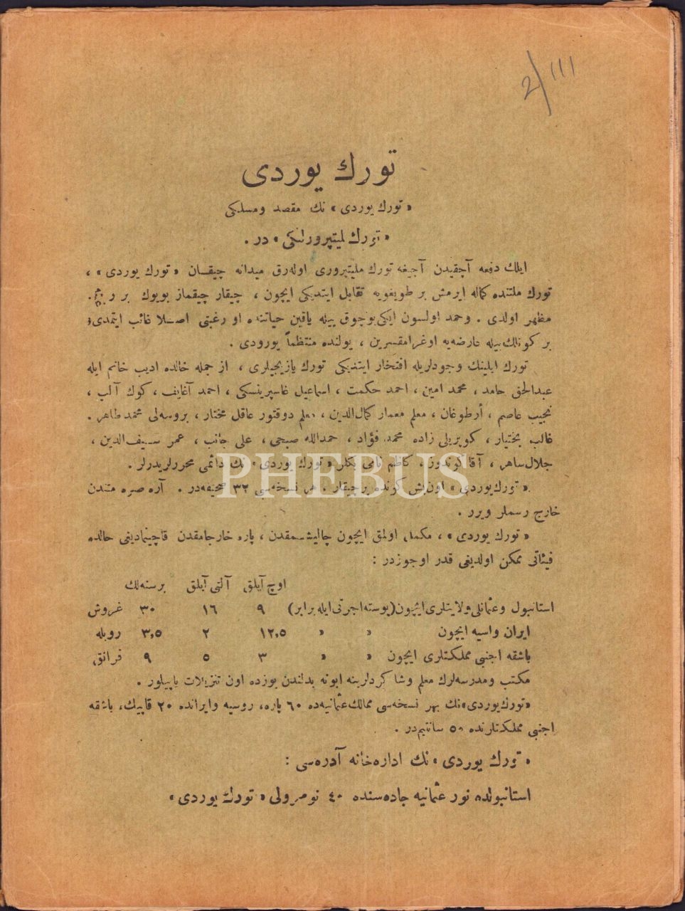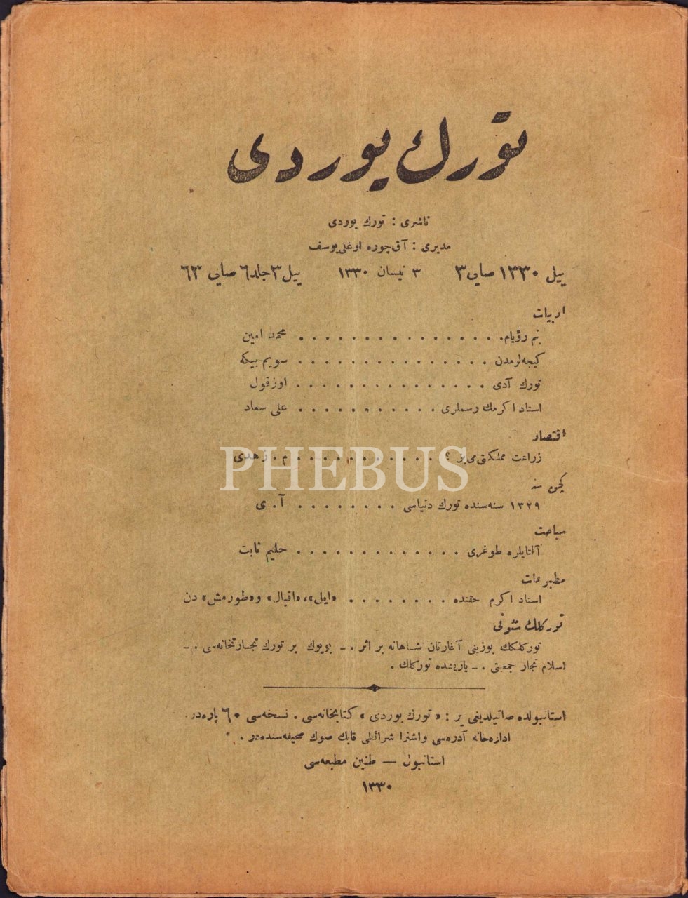 Osmanlıca Türk Yurdu dergisi 6. cilt 3. sayı, 1330, 32 syf., 19x25 cm