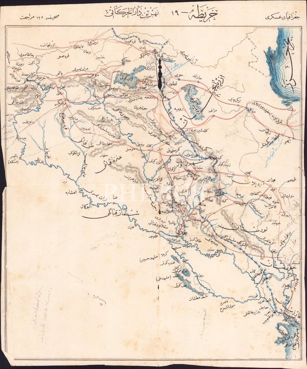 Osmanlıca Nehreyn Darü'l-Harekatı haritası, 28x33 cm, haliyle