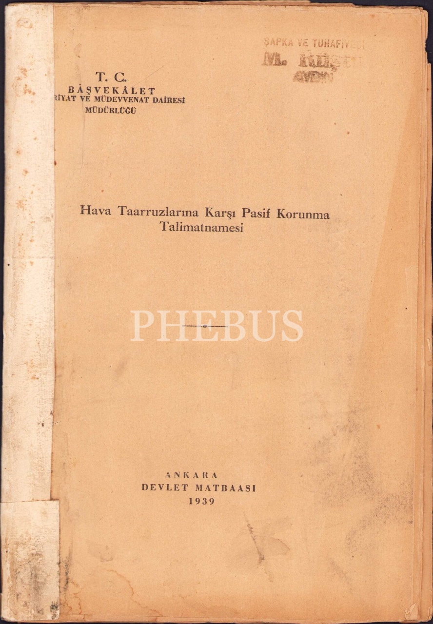 Hava Taarruzlarına Karşı Pasif Koruma Talimatnamesi, Ankara Devlet Matbaası 1939, 62 syf., 17x25 cm, haliyle