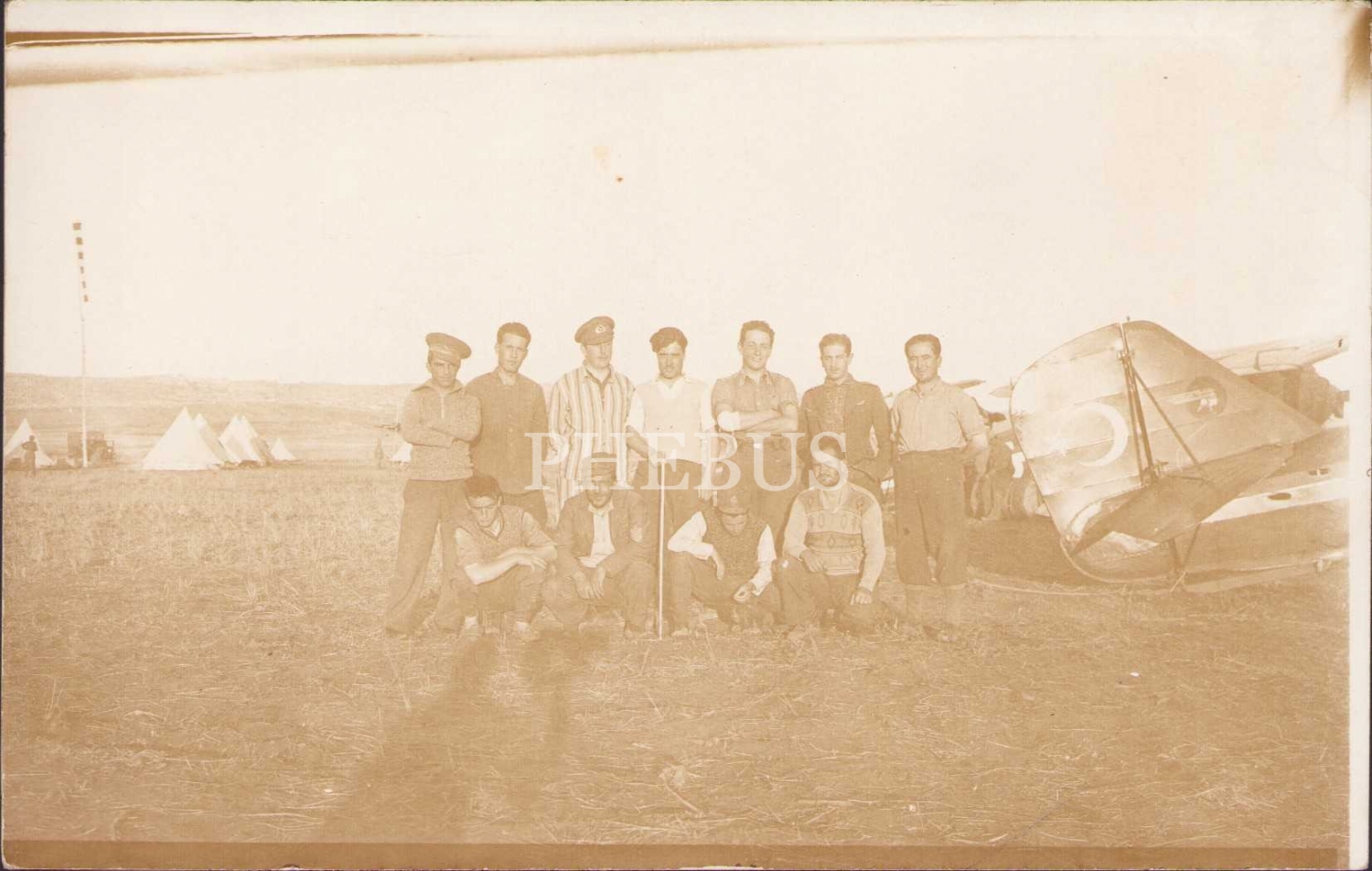 Uçak önünde askeri kamp hatıra fotoğrafı, 9x14 cm