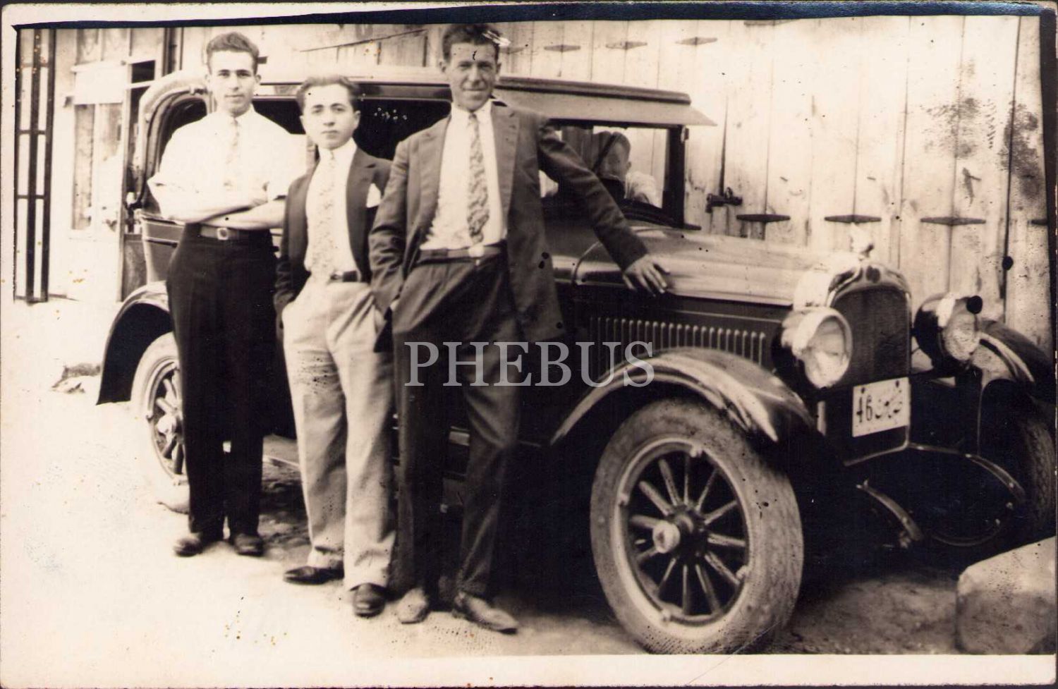 Osmanlıca Samsun plakalı klasik araba önünde hatıra fotoğrafı, 9x14 cm