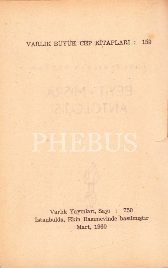Başlangıçtan Bugüne Beyit - Mısra Antolojisi, İlhan Berk, Varlık Yayınları, İstanbul 1960, 75 syf., 12x17 cm
