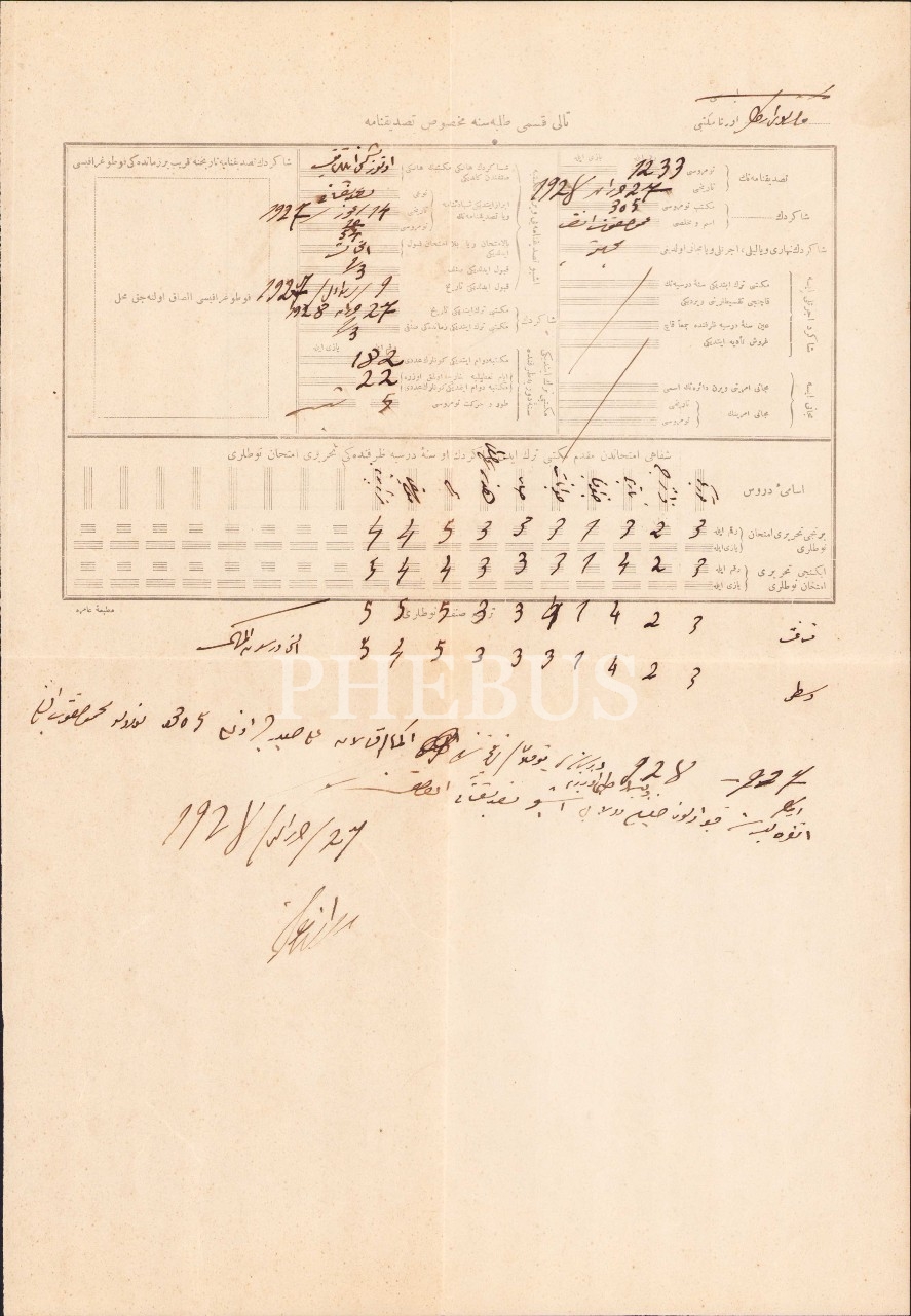 Osmanlıca tasdikname, 1928, Kadıköy Erkek Ortaokulu, 28x41 cm