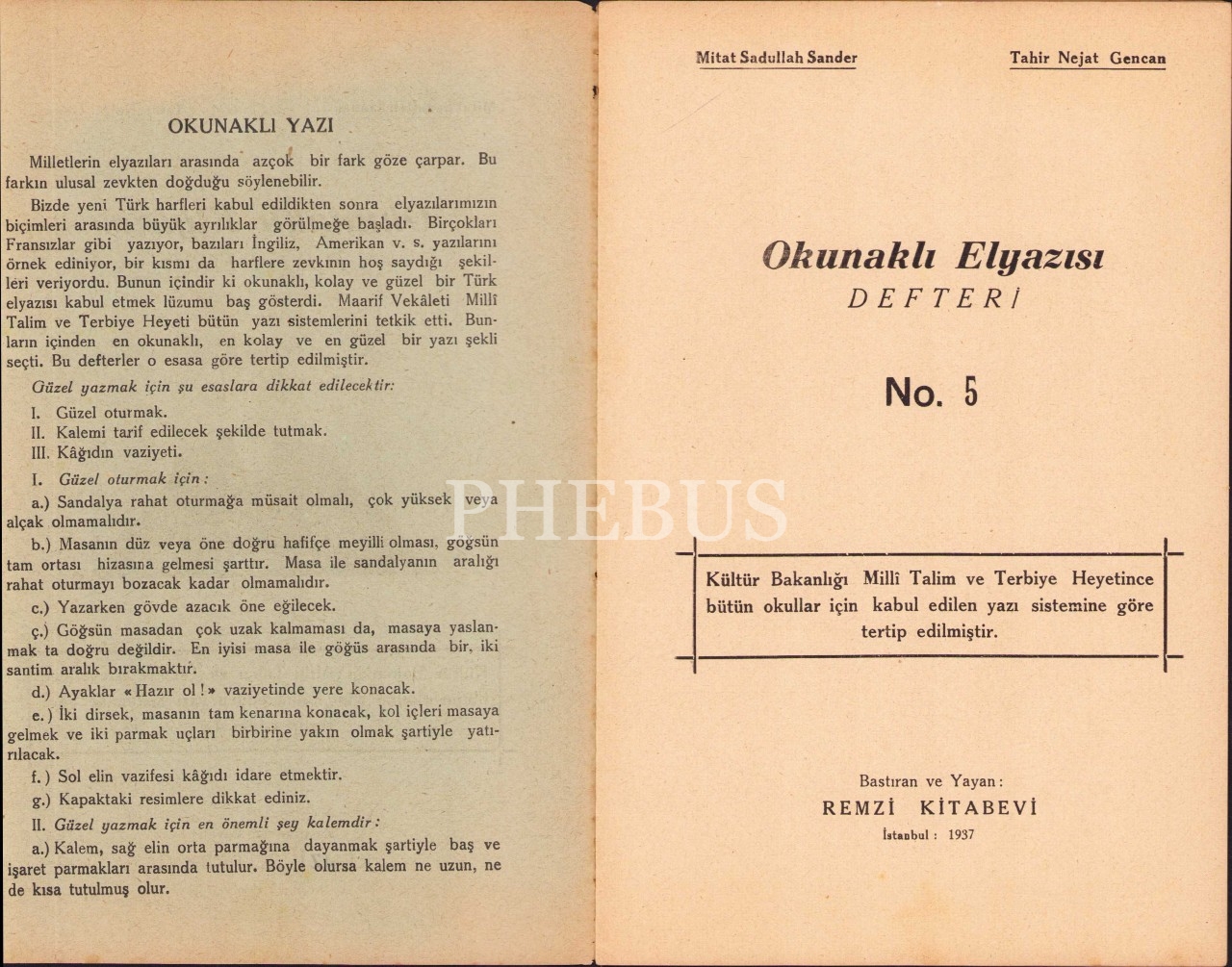 Okunaklı El Yazısı Defteri, Mitat Sadullah Sander-Tahir Nejat Gencan, Remzi Kitabevi, İstanbul 1937, 16 syf., 14x22 cm