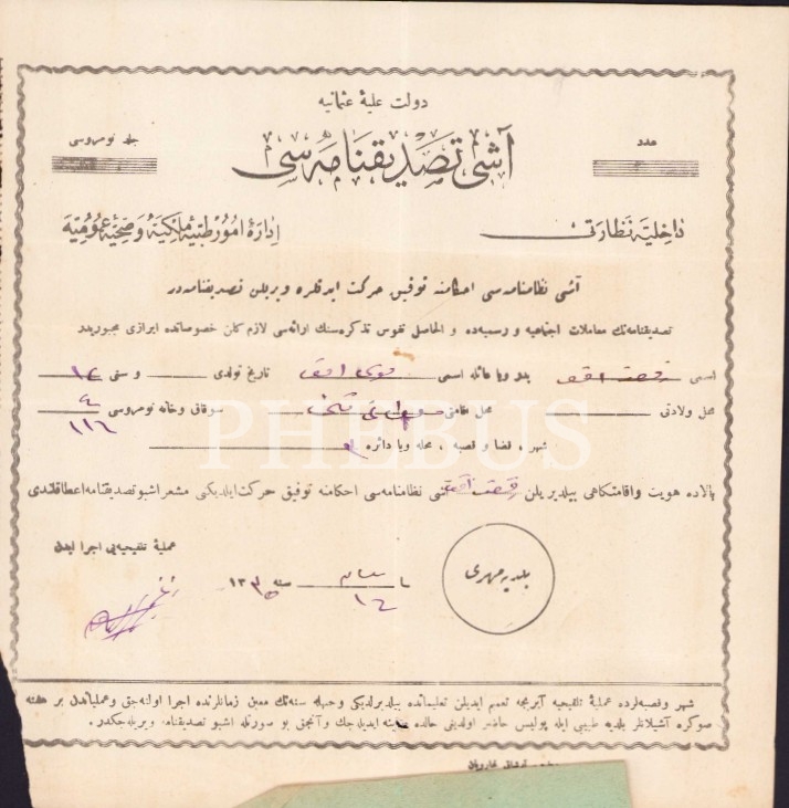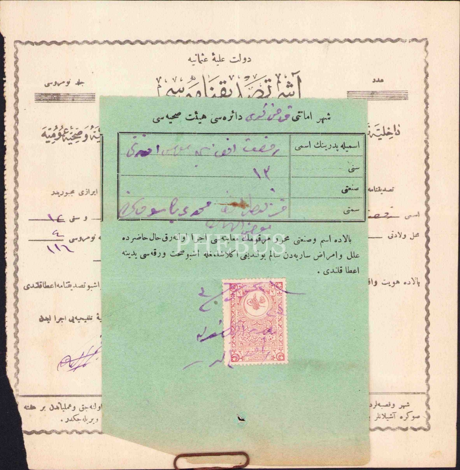 Osmanlıca aşı tasdiknamesi, Kadıköy, 1335, 20x20 cm, bir ucu yırtık