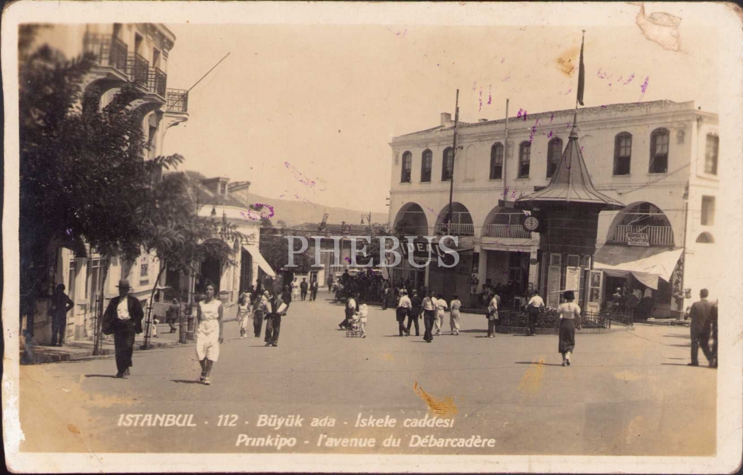 Cumhuriyet döneminden Büyükada - İskele Caddesi genel görünüm, İstanbul, 9x14 cm