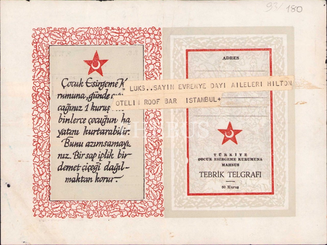 Türkiye Çocuk Esirgeme Kurumuna özel tebrik telgrafı kağıdı, 16x22 cm